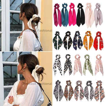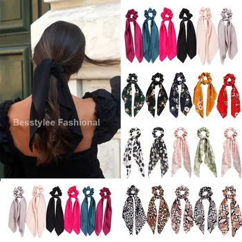 1PC New Women Scrunchie Ribbon Elastic Hair Bands Bow Scarf Printing Head Band for Girls Ladies Hair Ropes Ties Hair Accessories