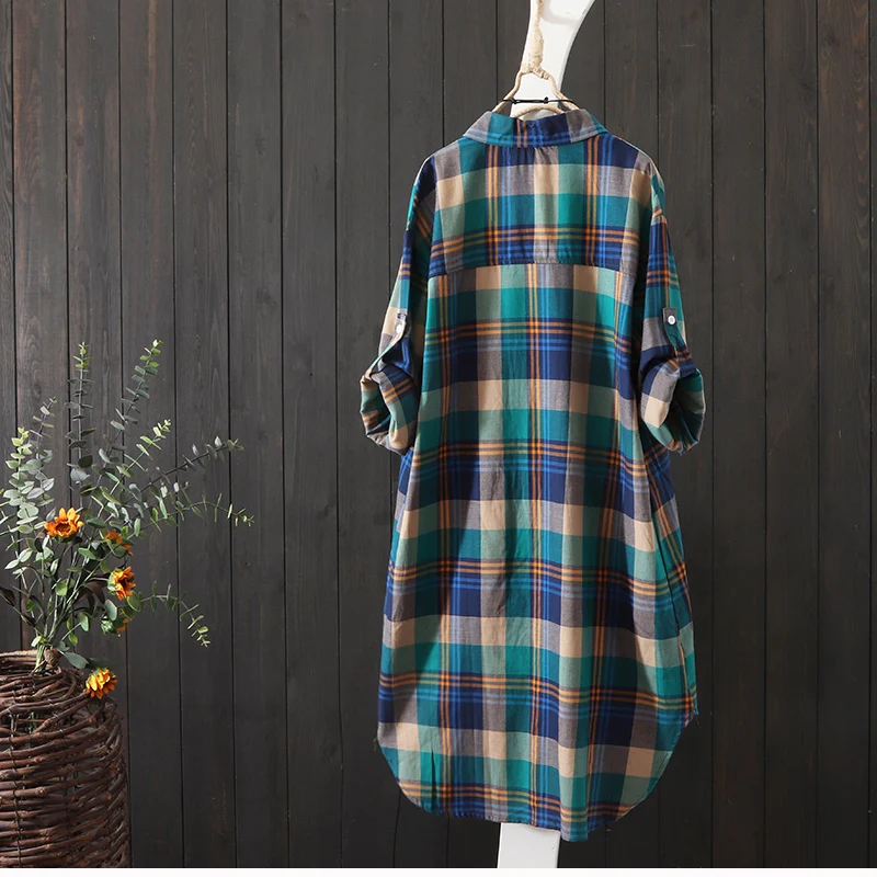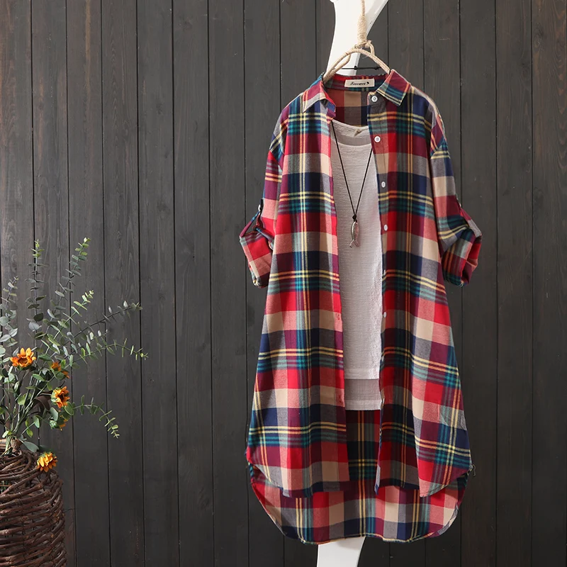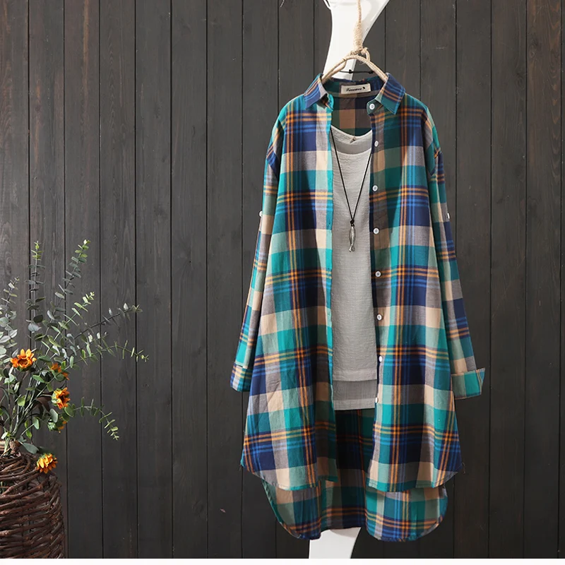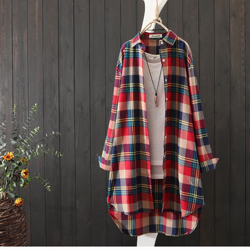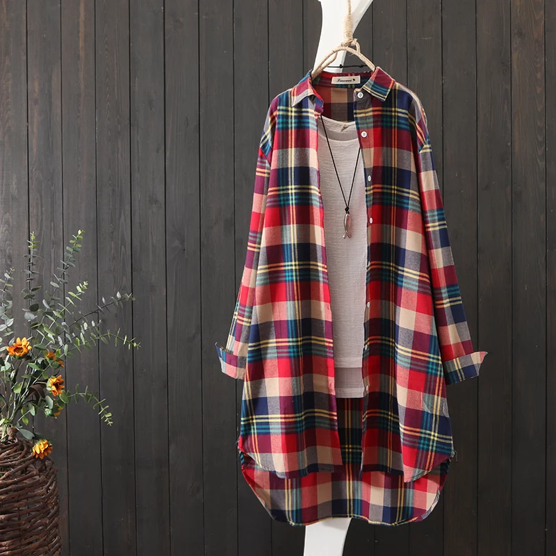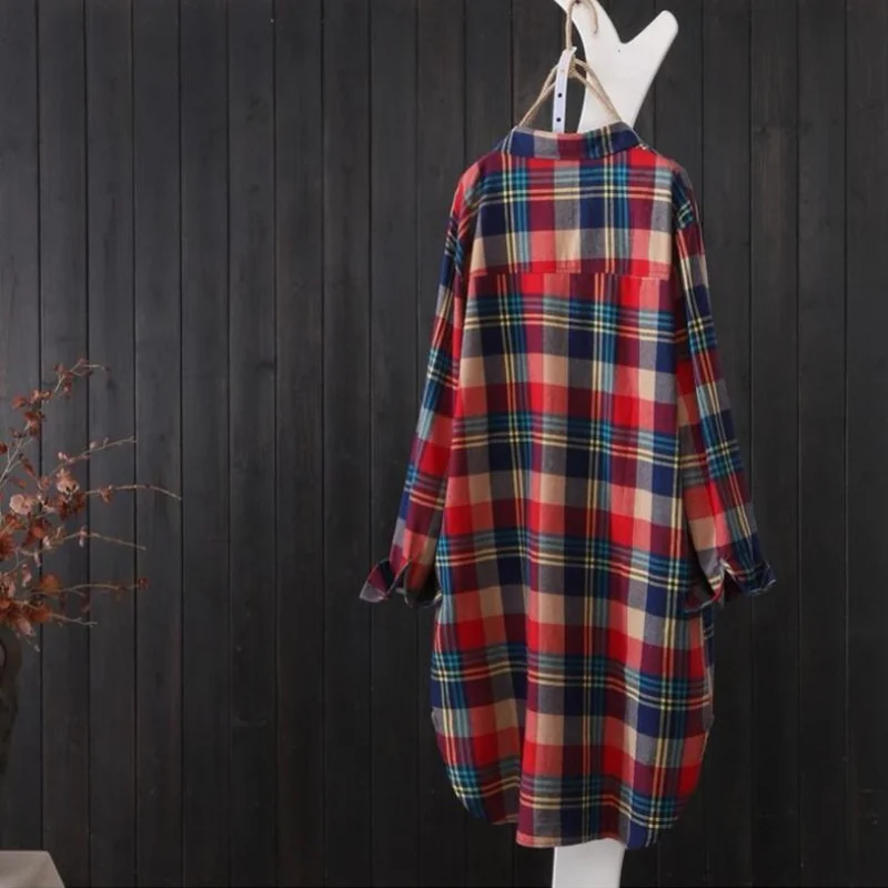 100% Cotton Plaid Shirt Long Sleeve 2020 Women Autumn Summer New Fashion Button Up Casua Loose Blouse Plus Size