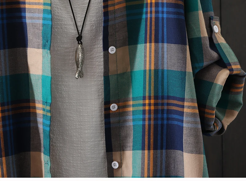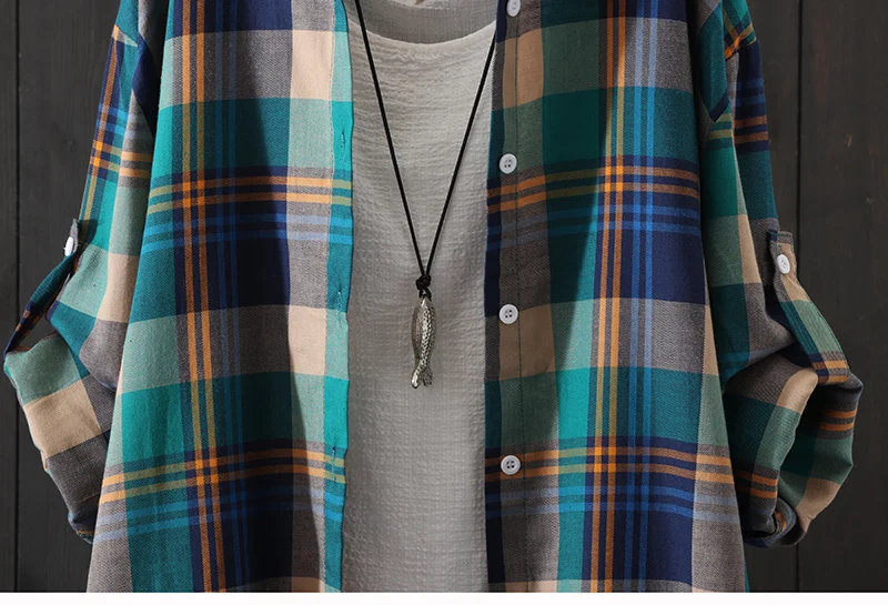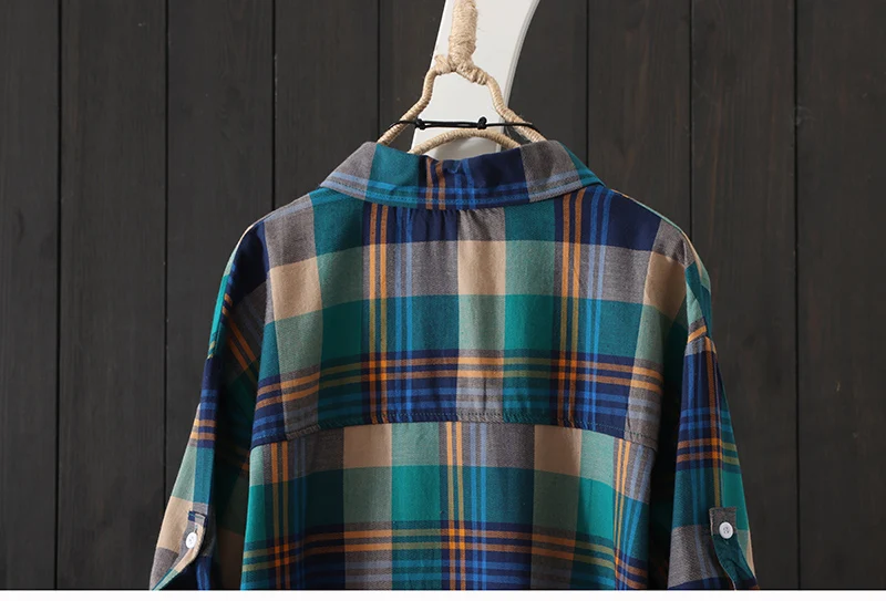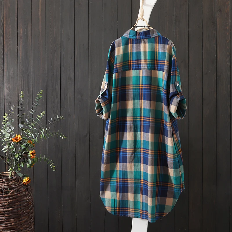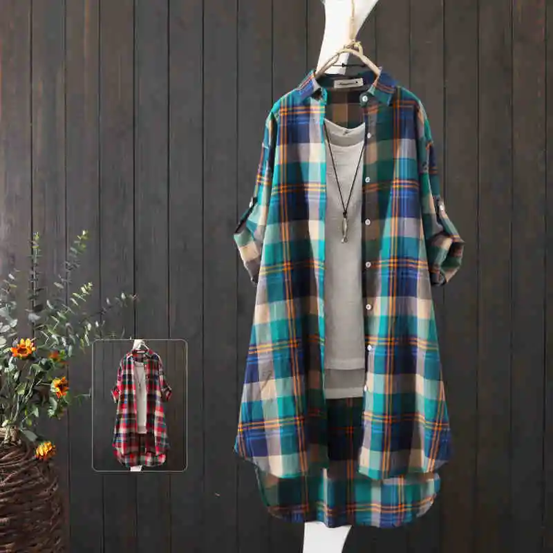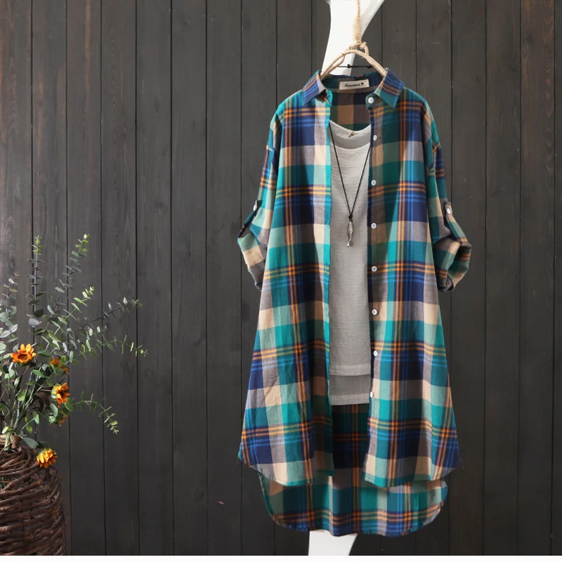 100% Cotton Plaid Shirt Long Sleeve 2020 Women Autumn Summer New Fashion Button Up Casua Loose Blouse Plus Size