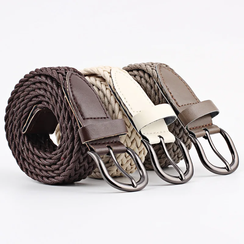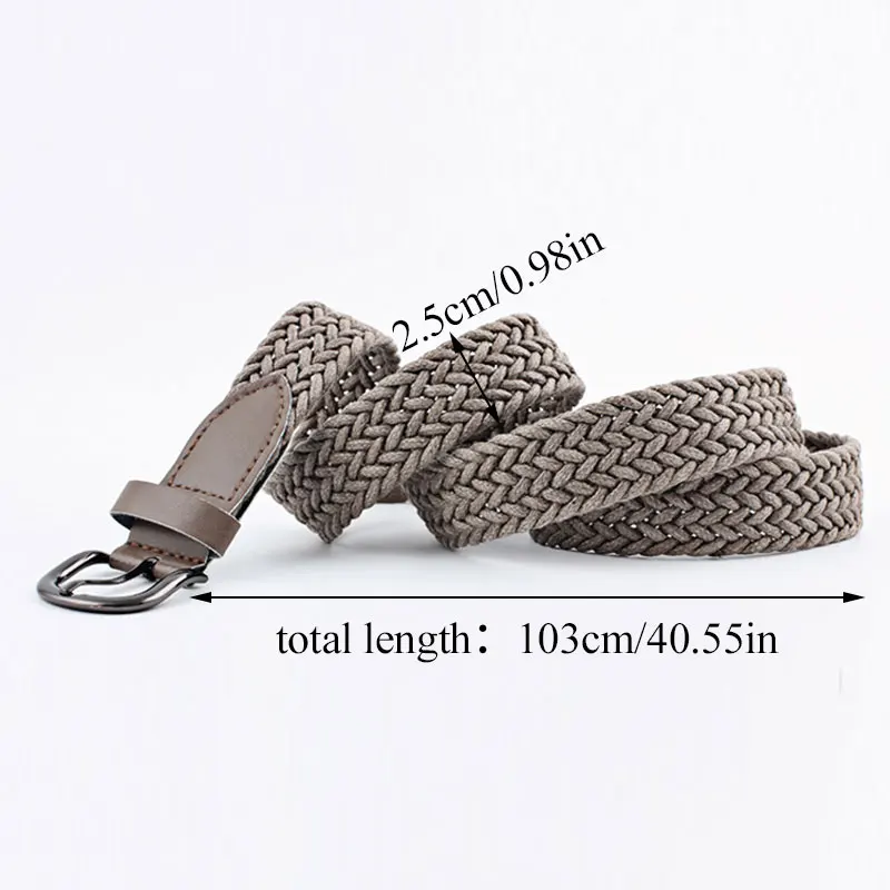 103cm Women Stretch Twist Woven Belt Wax Rope Braided Waistband Fashion Casual Female Belt For Jeans Dress Metal Buckle Belts