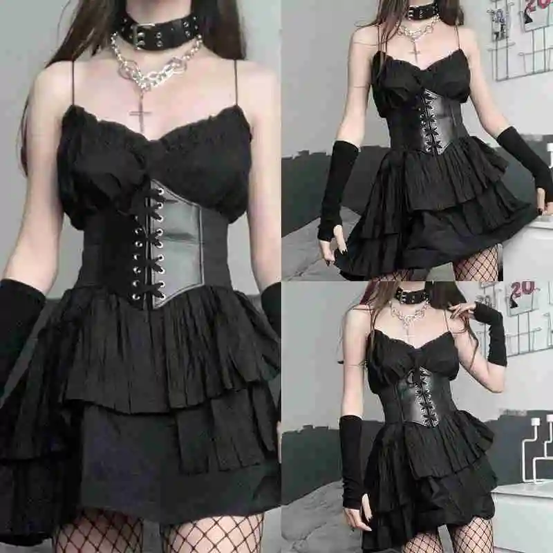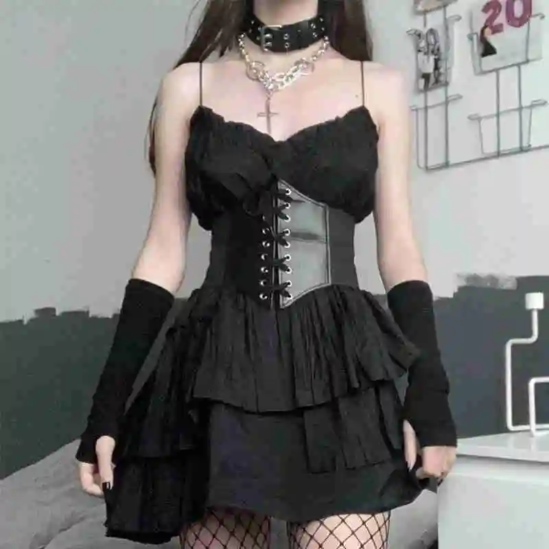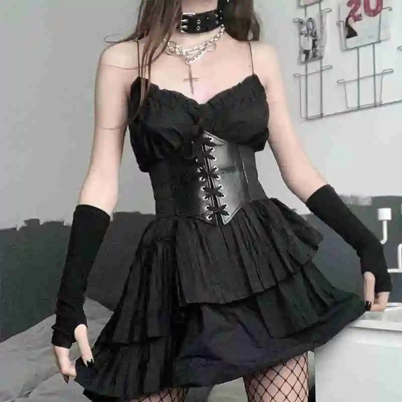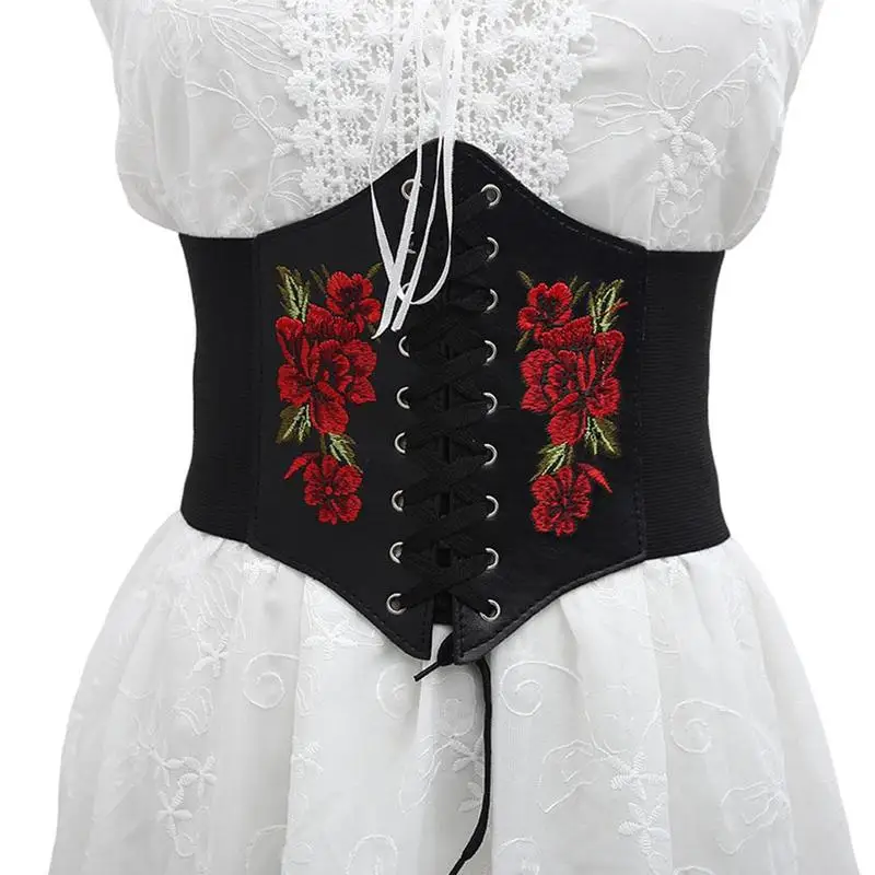 1Pcs Gothic Dark Lace Up Female Waist Corset Belt Wide PU Leather Belts Women Fashion Slimming Waistband Adjustable Dress Girdle