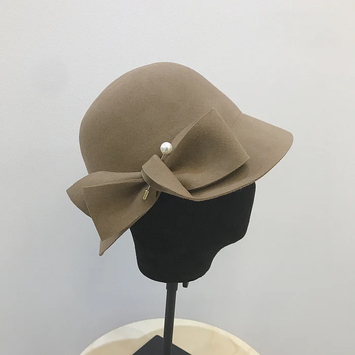 2018 Autumn And Winter New Bucket Basin Of Bowknot Pearl Wool Hat Female Warm Fashion Female Warm