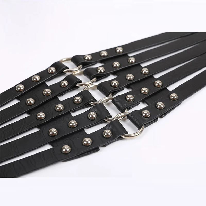 2019 brand design vintage metal Ring Belt Gold Ladies Women Belts Female Fashion Rivet Wide Waist Elastic 5 Straps PU Belt