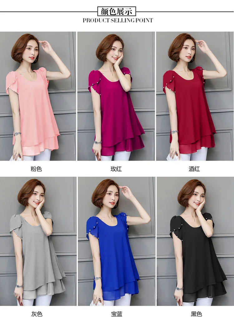 2019 summer women’s shirt blouse for women blusas short sleeve womens tops and blouses chiffon shirts woman top plus size 5xl