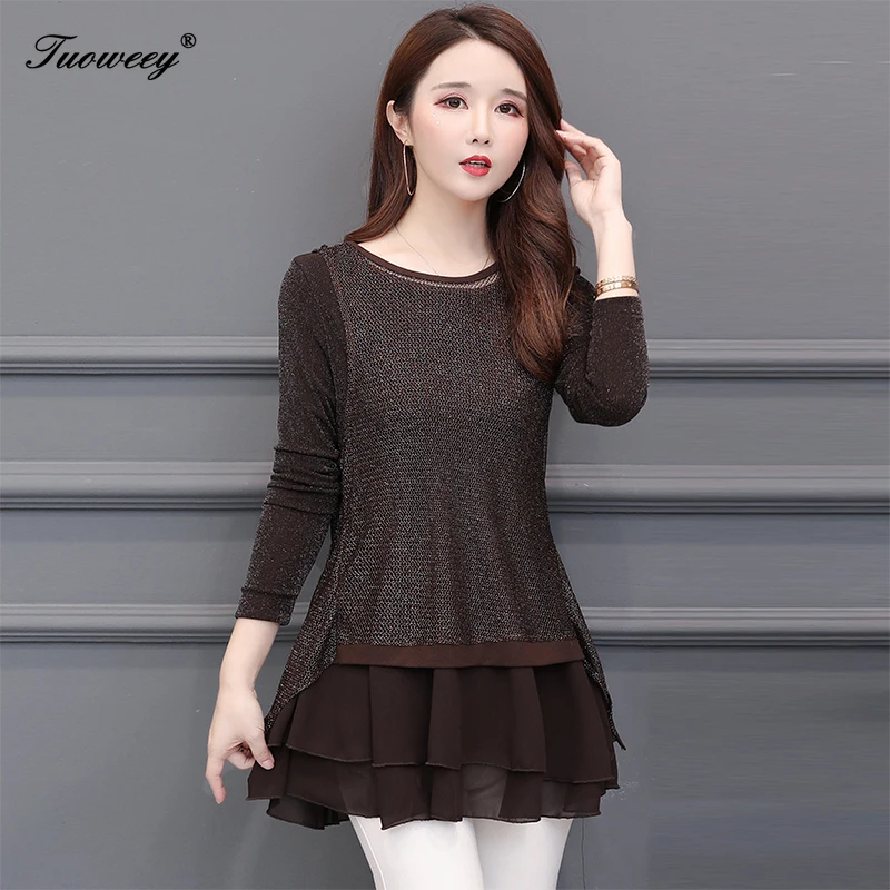 2020 Fashion autumn long Sleeve 5XL Plus Size floral Women Blouses loose patchwork Long Shirt Female woman clothes