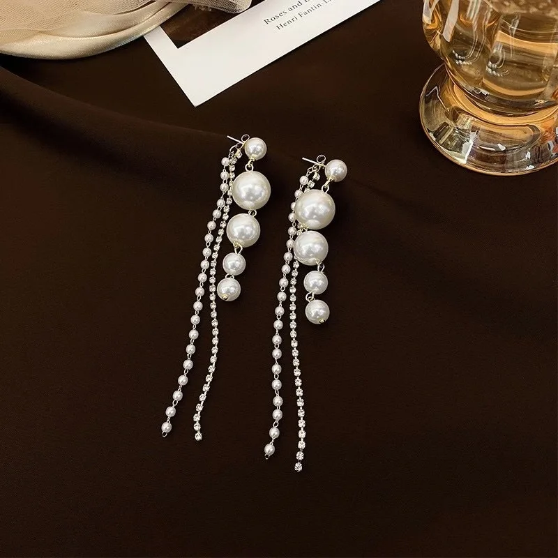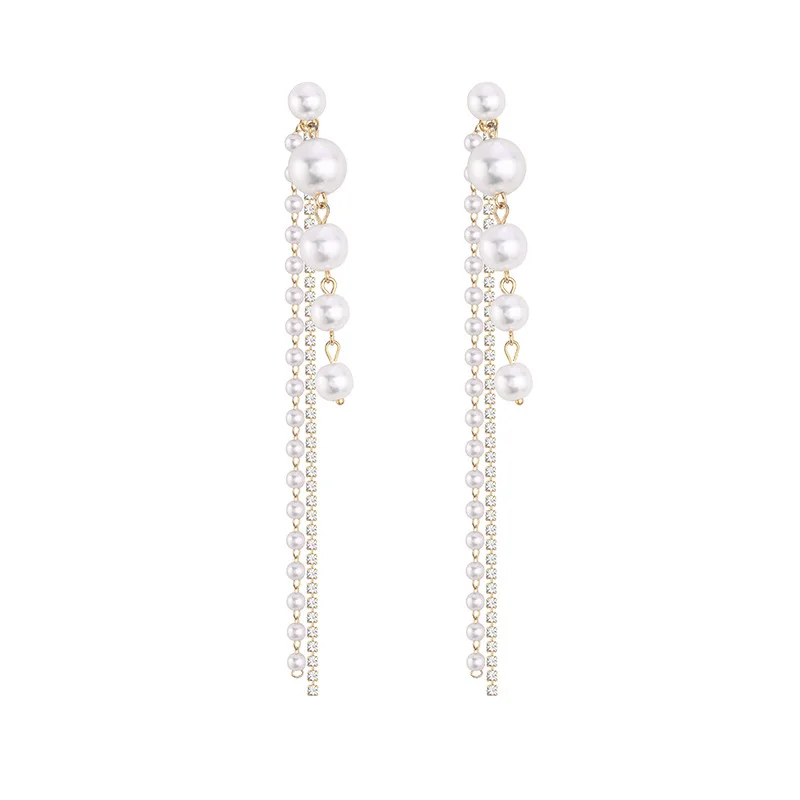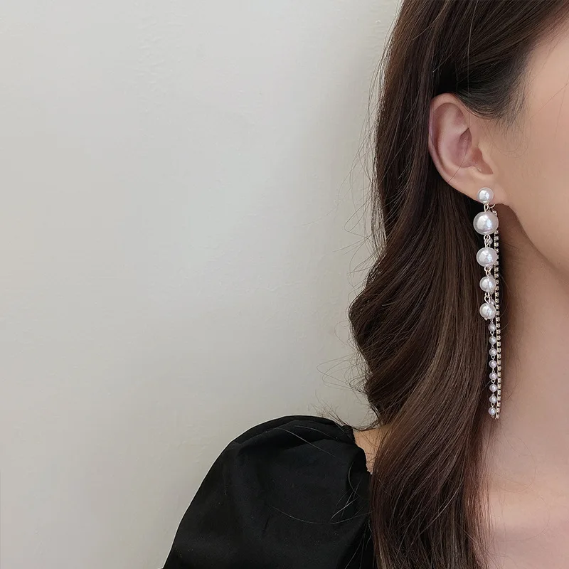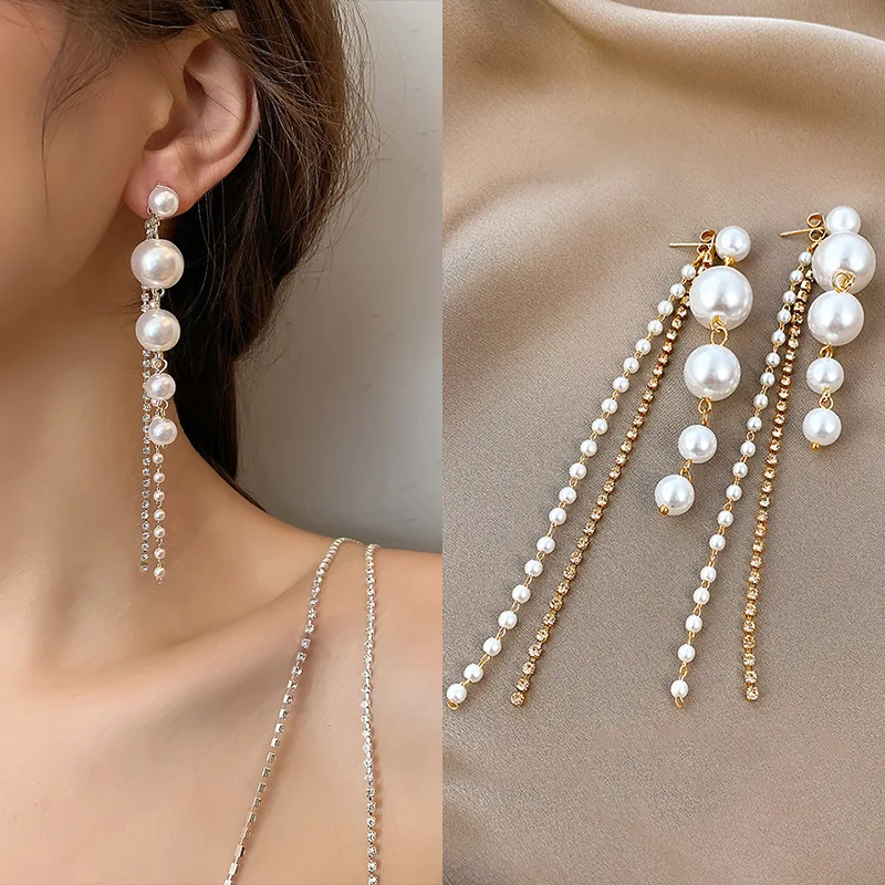 2020 New Arrival Trendy Simulated-pearl Long Tassel Dangle Earrings For Women Fashion Crystal Water Drop Jewelry Gifts