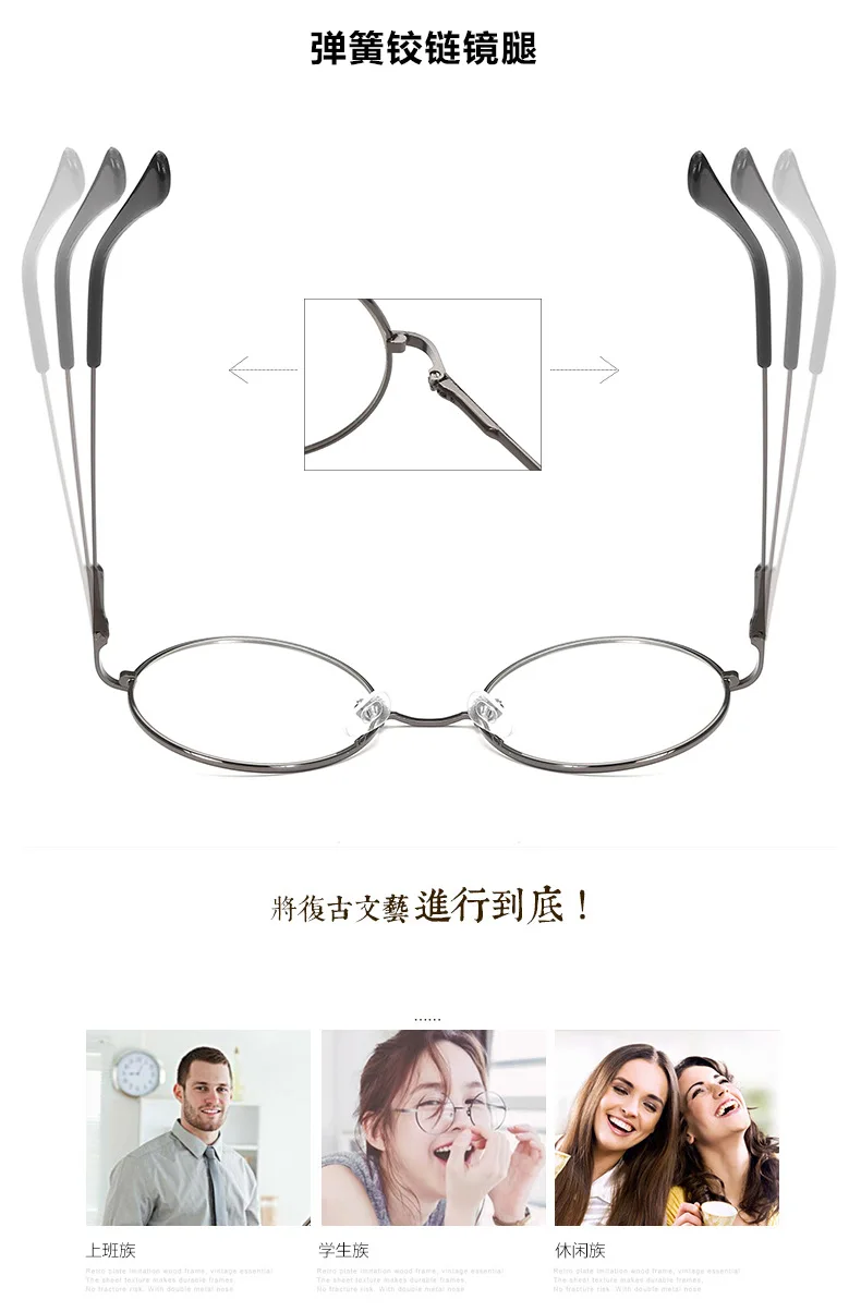 2020 New fashion simple unisex round Plain glasses for men women Metal frame glasses for wedding party eyeglasses Spring hinge