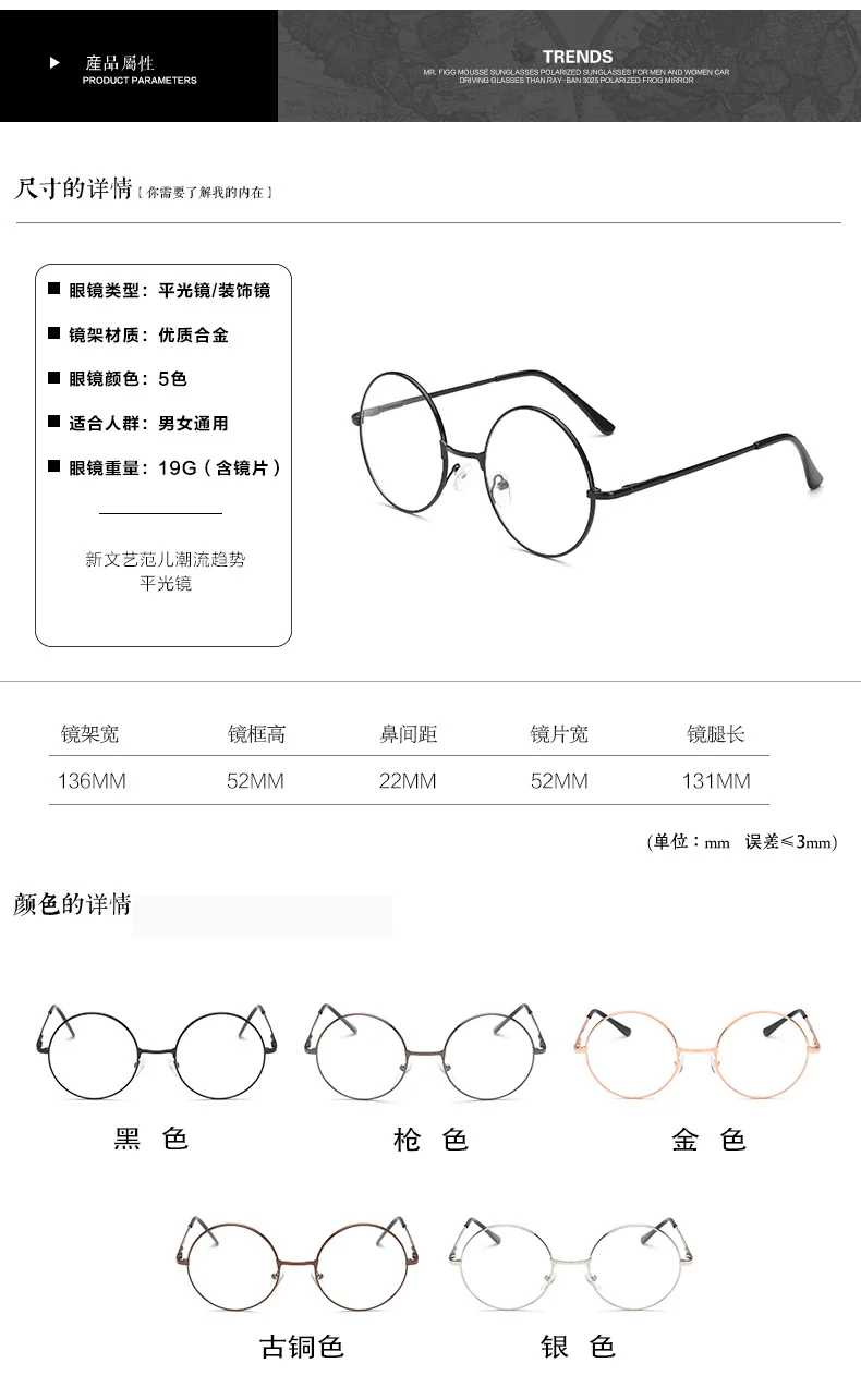 Be the first to review “2020 New fashion simple unisex round Plain glasses for men women Metal frame glasses for wedding party eyeglasses Spring hinge”
