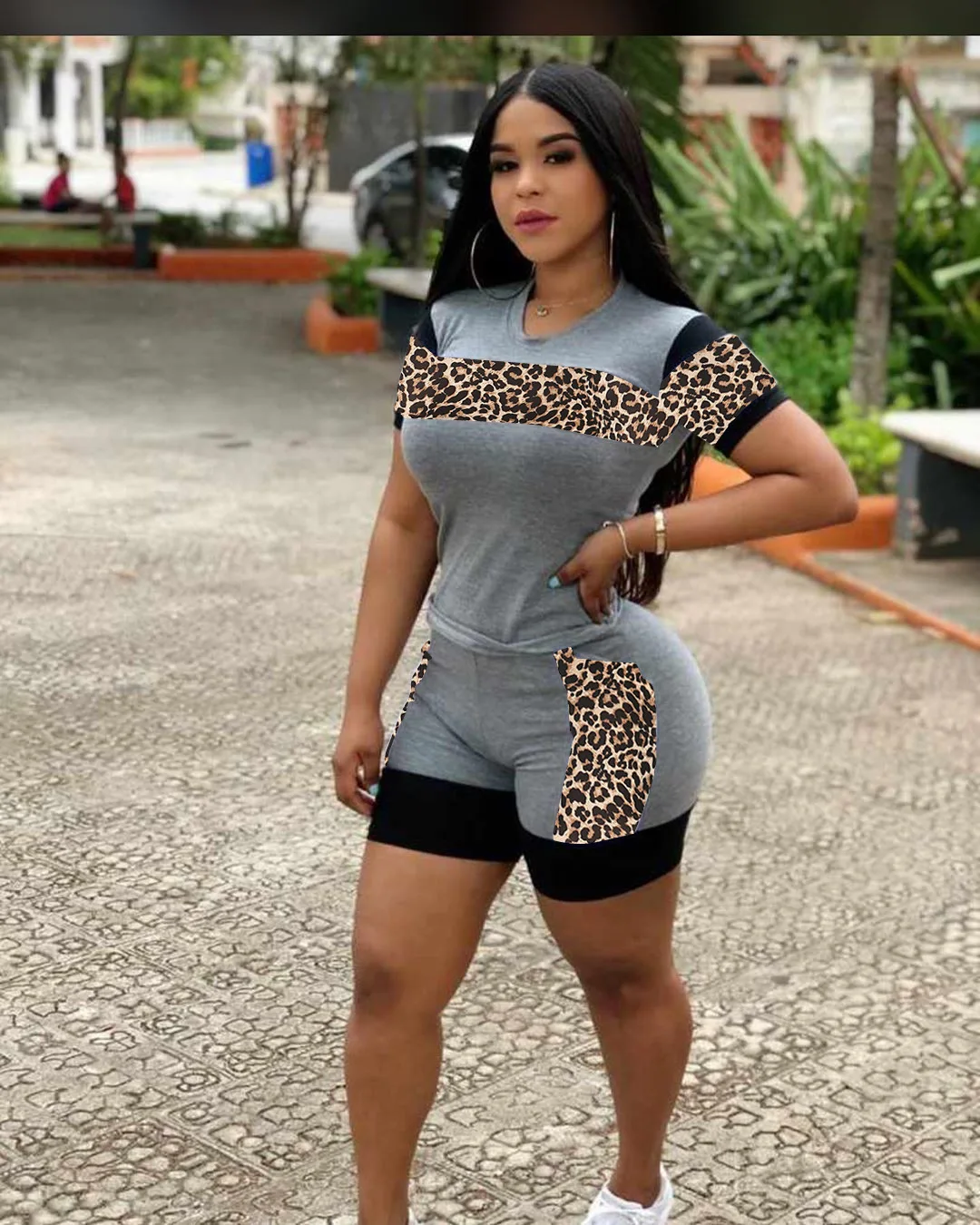 2020 New Style Suit Casual Leopard Splicing Two-Piece Suit European and American Fashion Women’s Clothing