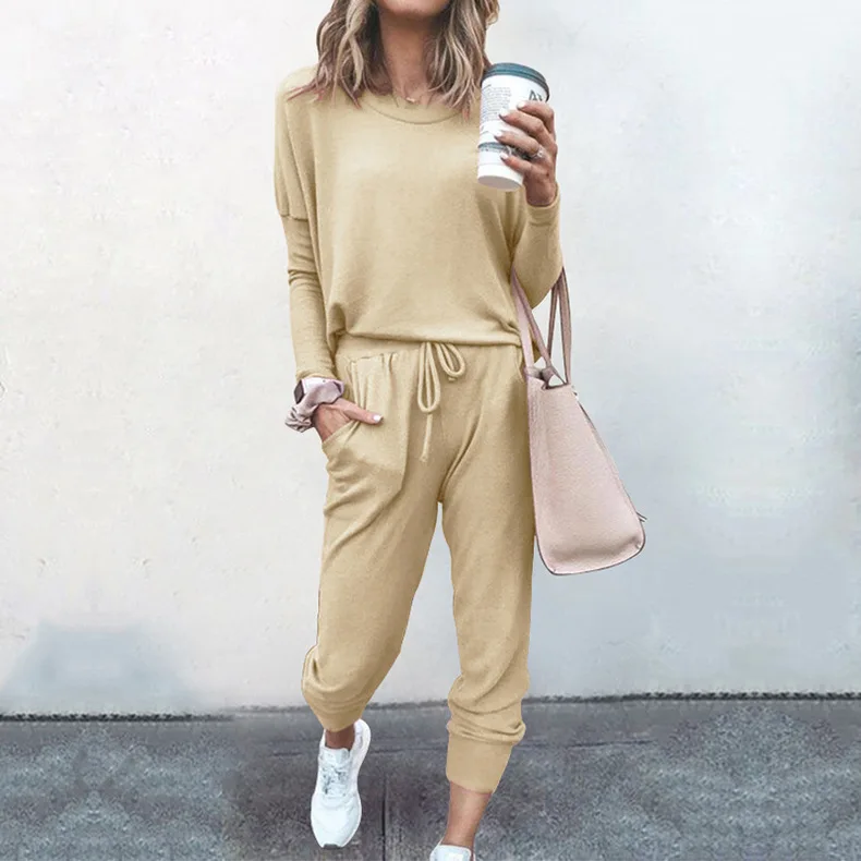 2020 top Spring Autumn Tracksuit Women 2 Piece Set Loose Comfortable Simple Style Solid Color Long Sleeve Casual Suit Clothes