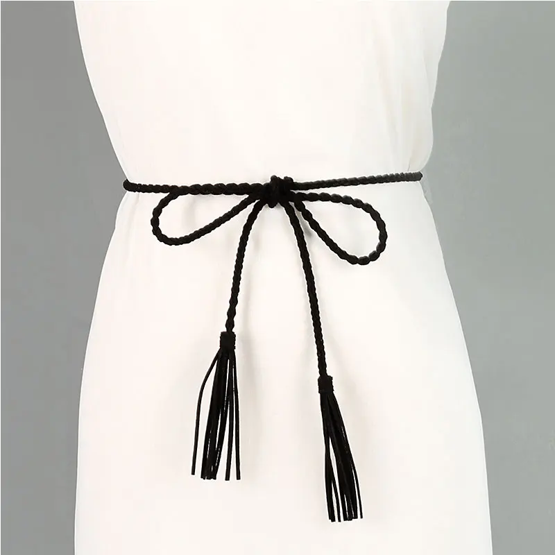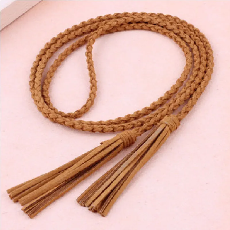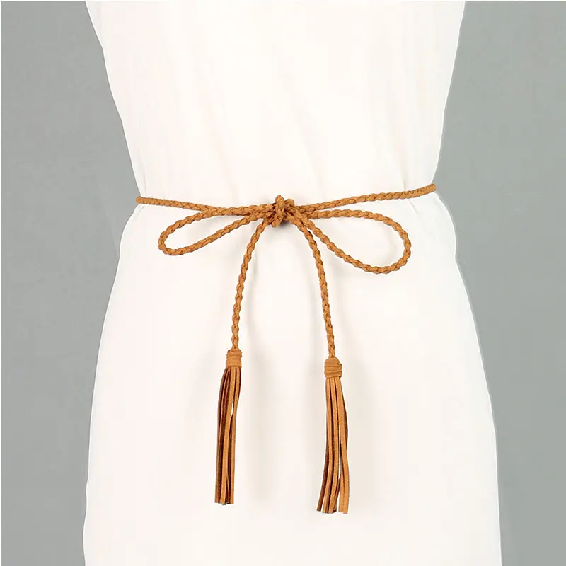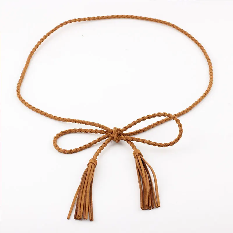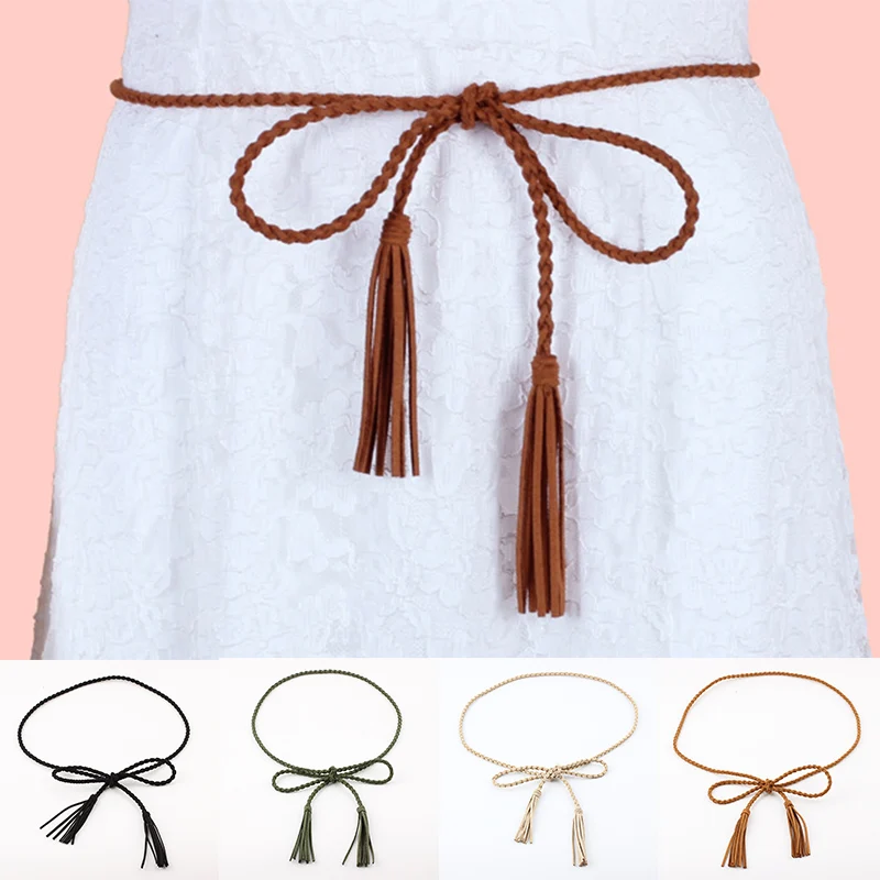 2020 Women Woven Tassel Belt Braided waistband Boho Girls Thin Waist Rope Knitted waist Belts For Dress Waistbands Accessories