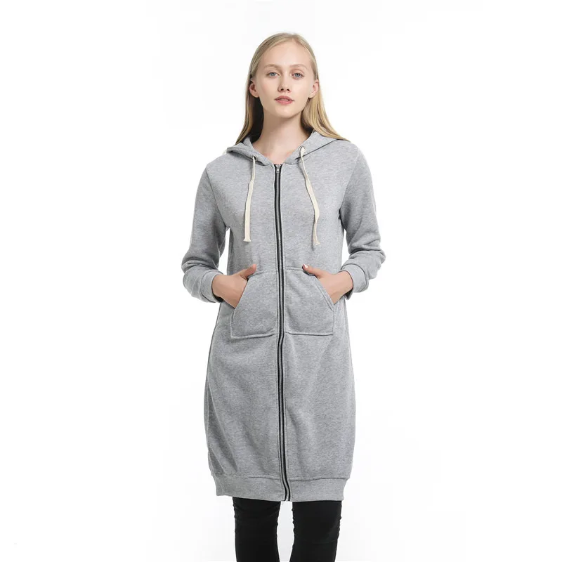 2021 Autumn Casual Women Long Hoodies Sweatshirt Coat Zip Up Outerwears Hooded Jacket Winter Pockets Outwear Tops