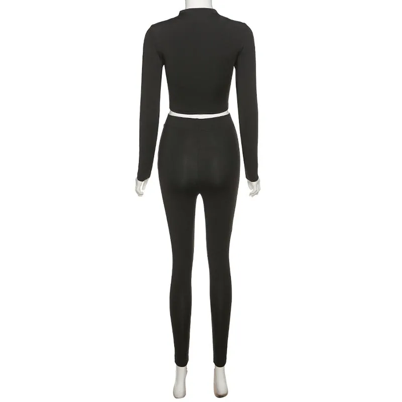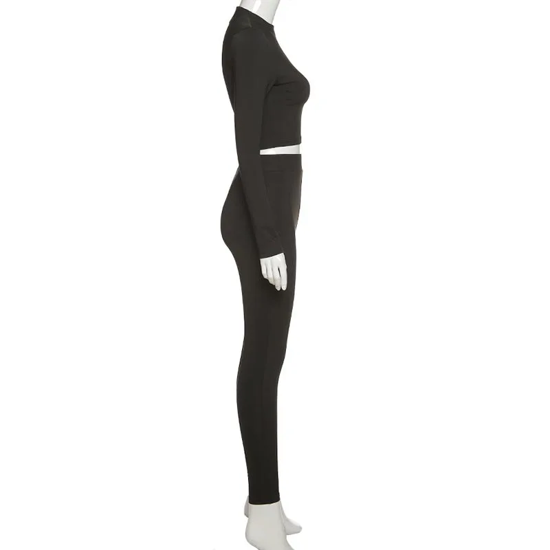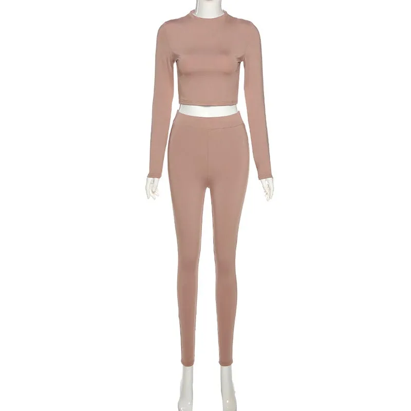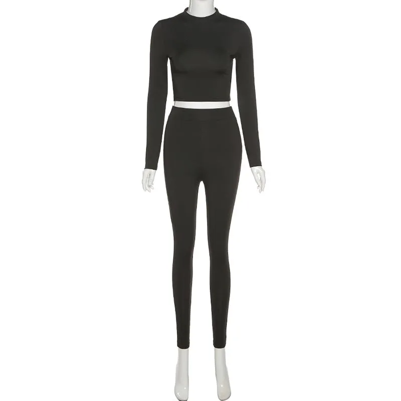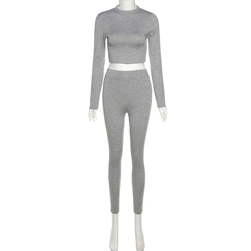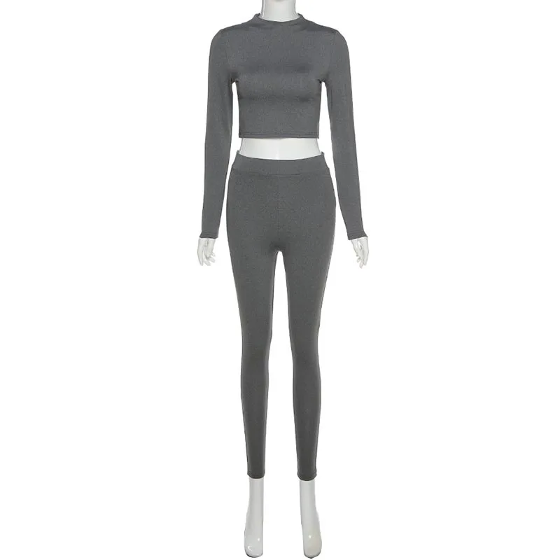 2021 Autumn Winter Women Sport Fitness 2 Two Piece Set Outfits Long Sleeve Solid Crop Tops Leggings Pants Set Bodycon Tracksuit