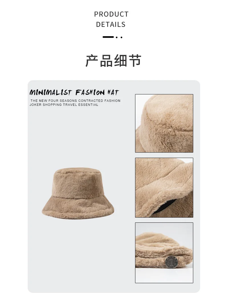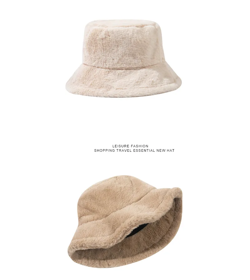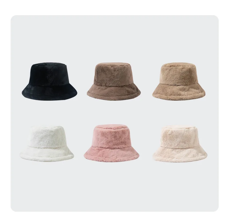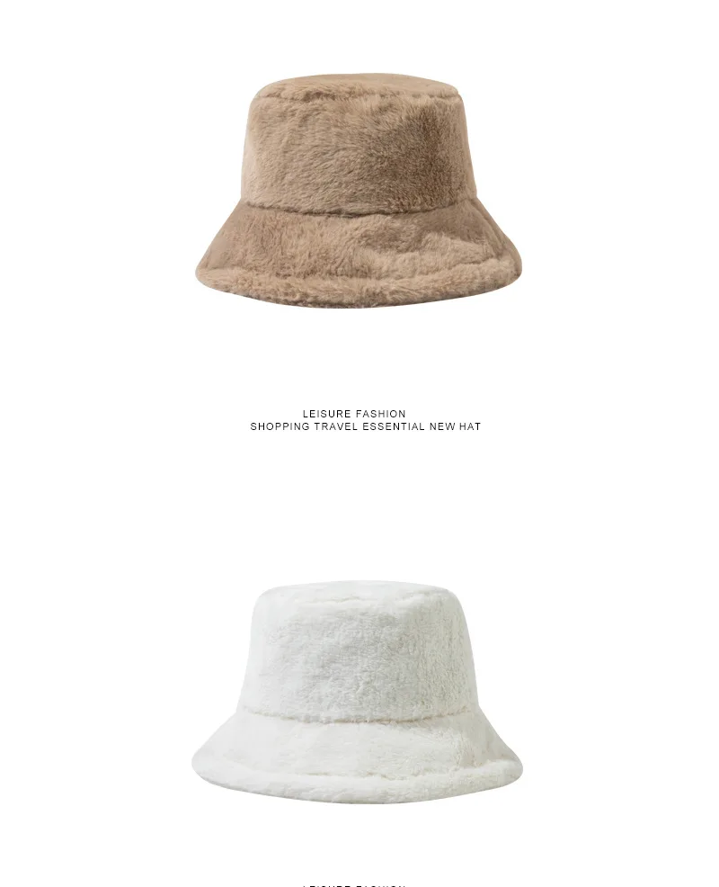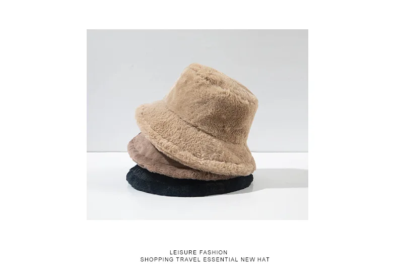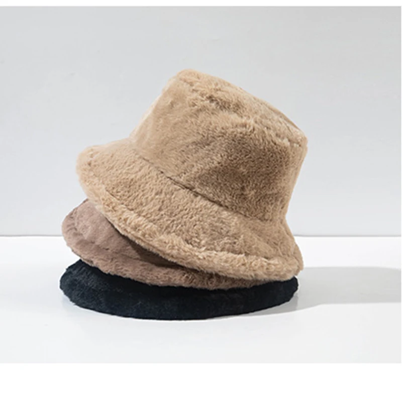 2021 Fashion Artificial Rabbit Fur Bucket Hat Women Autumn Winter Warm Thickened Fisherman Hat Panama Plush Basin Hat Lady Cap