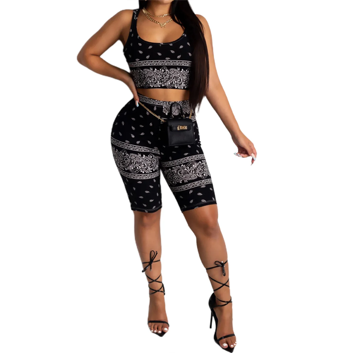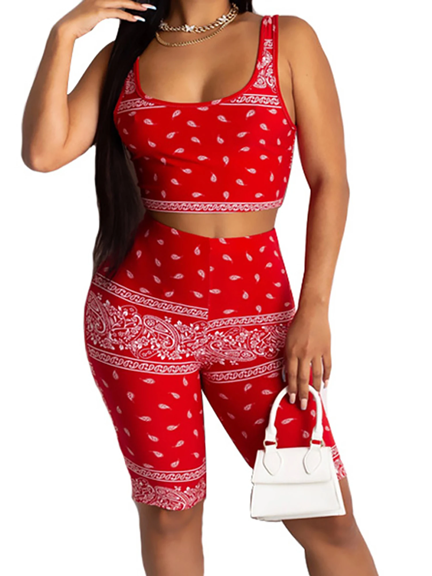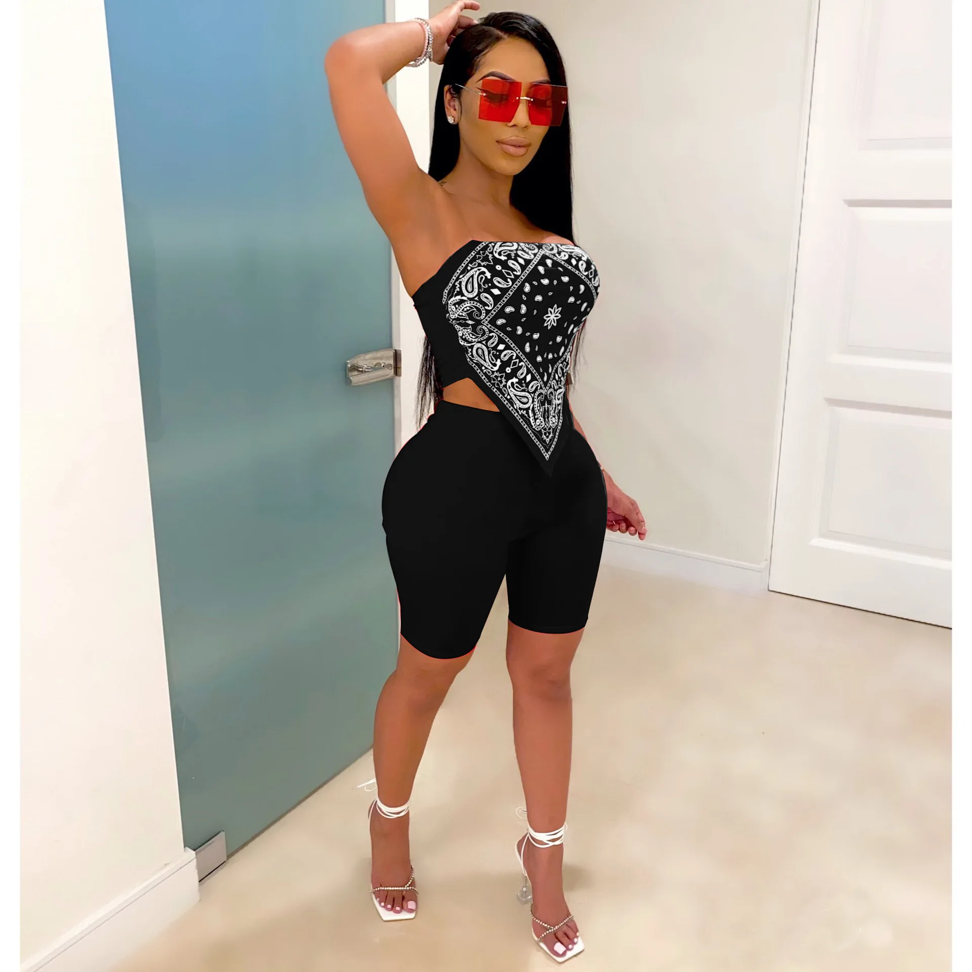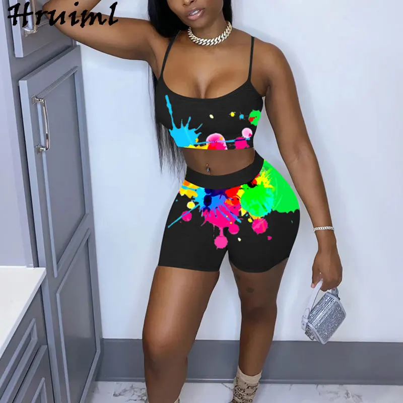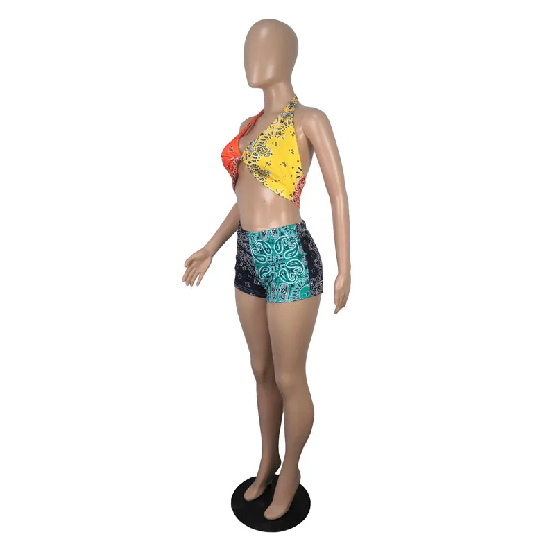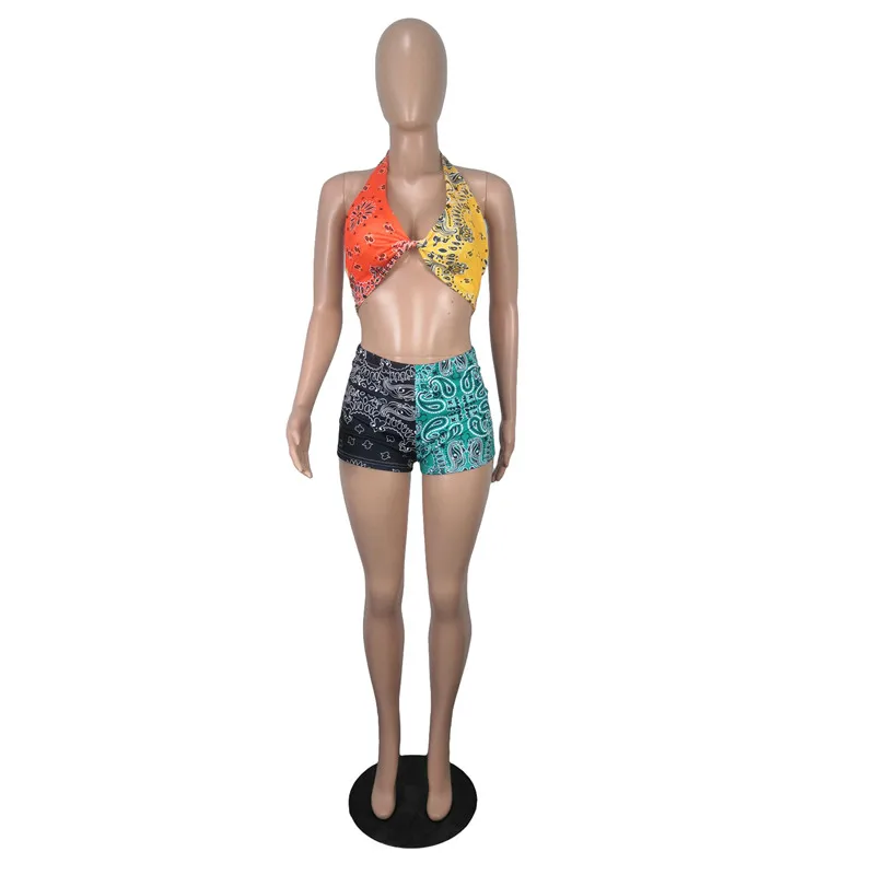 2021 Graphic Bandana 2 Piece Tracksuit Set Women Printed Casual Sport Cute Sexy Club Outfits for Women Matching Sets Top Sets