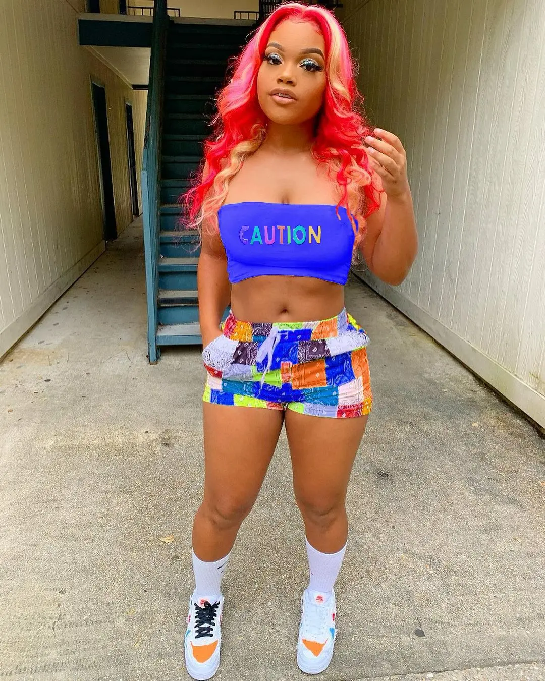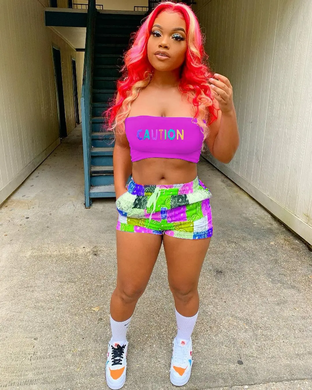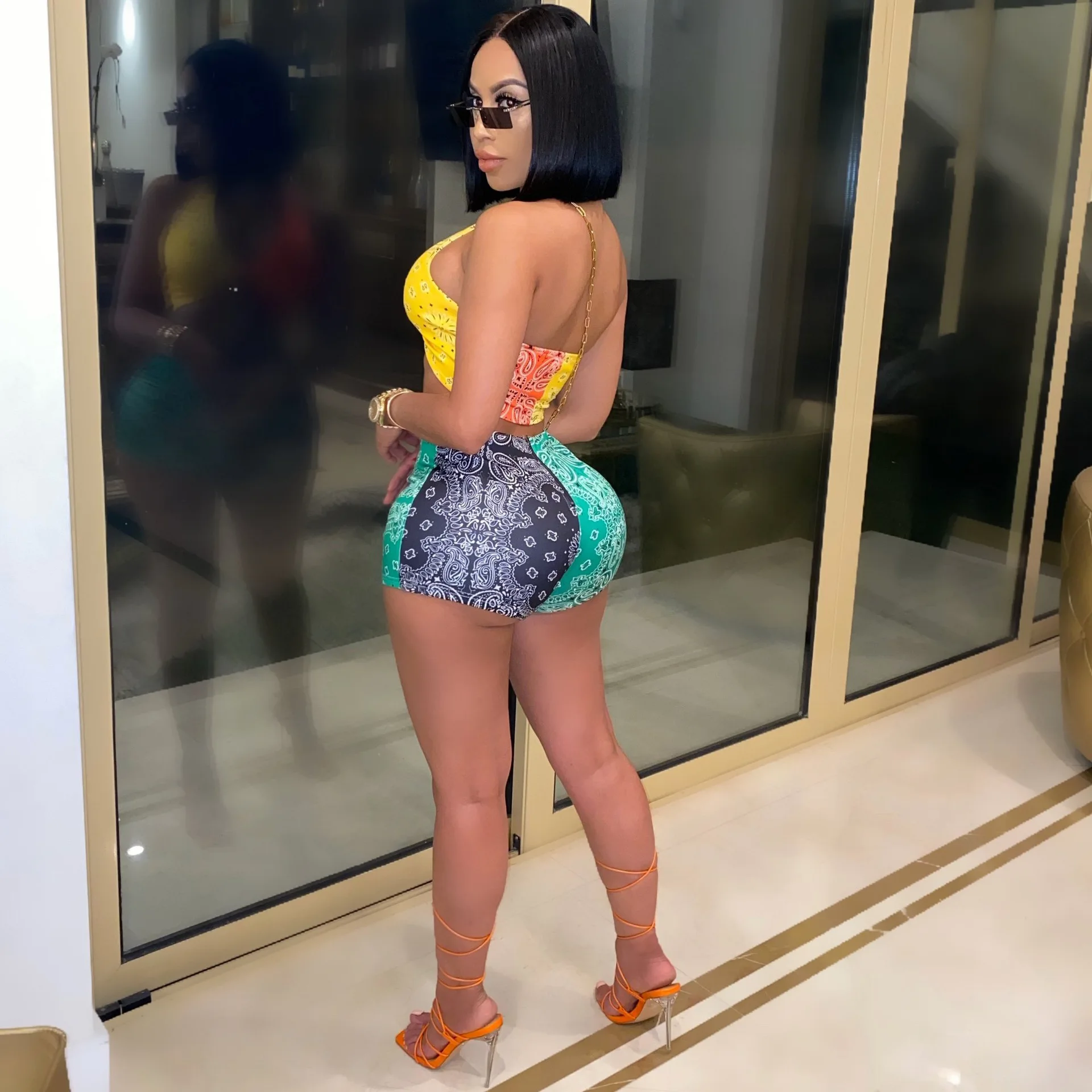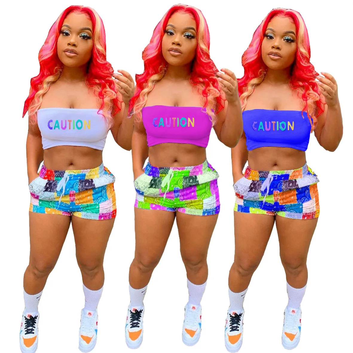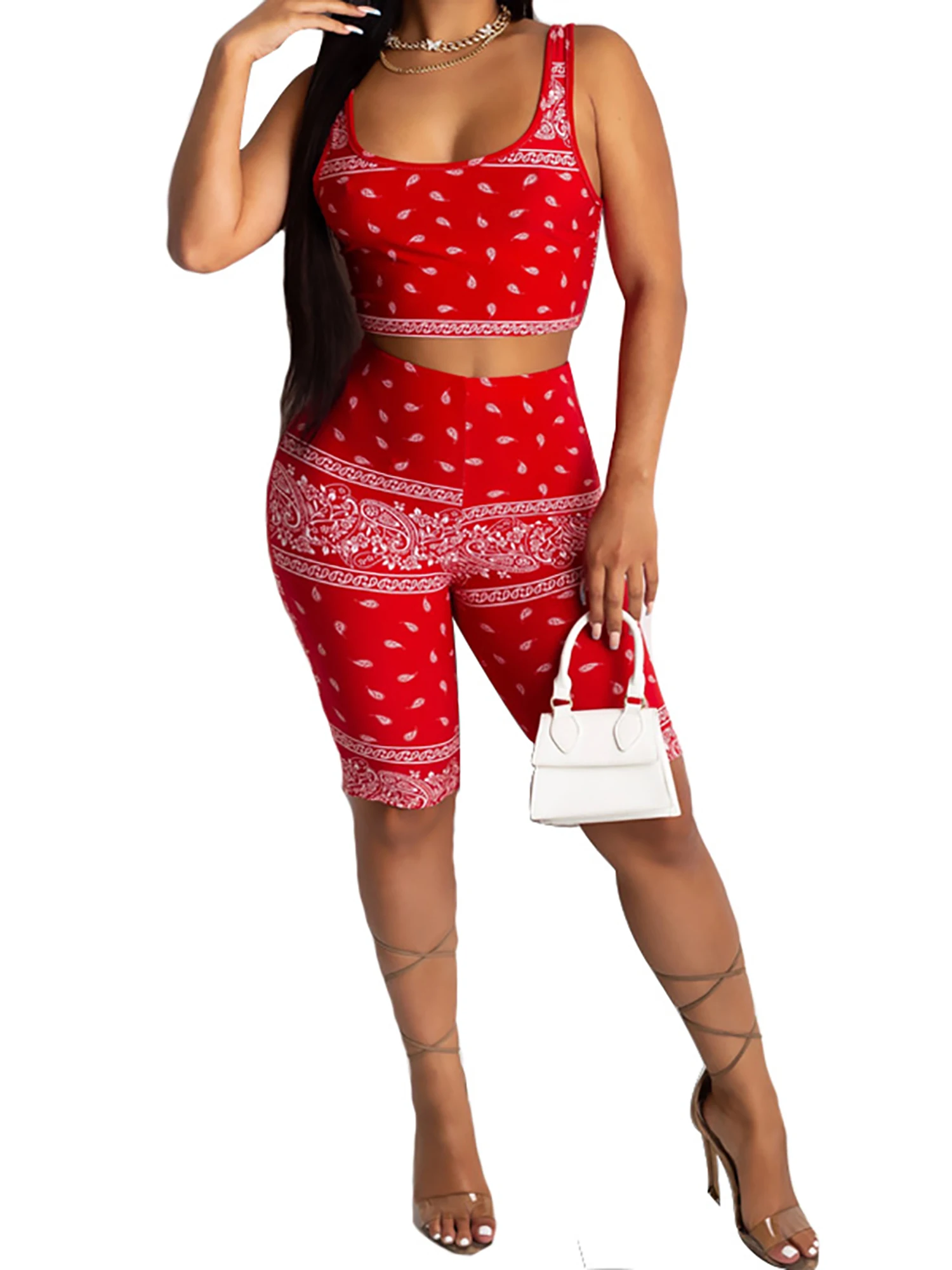 2021 Graphic Bandana 2 Piece Tracksuit Set Women Printed Casual Sport Cute Sexy Club Outfits for Women Matching Sets Top Sets