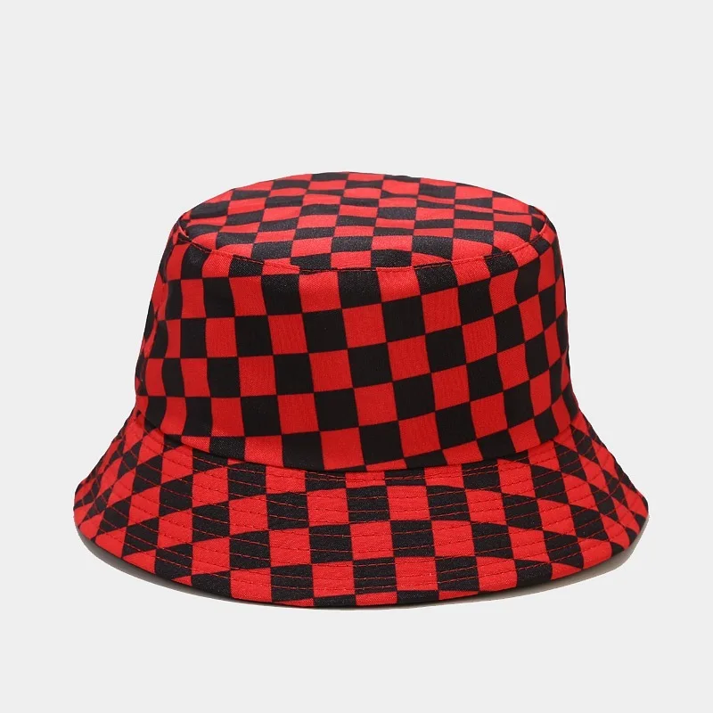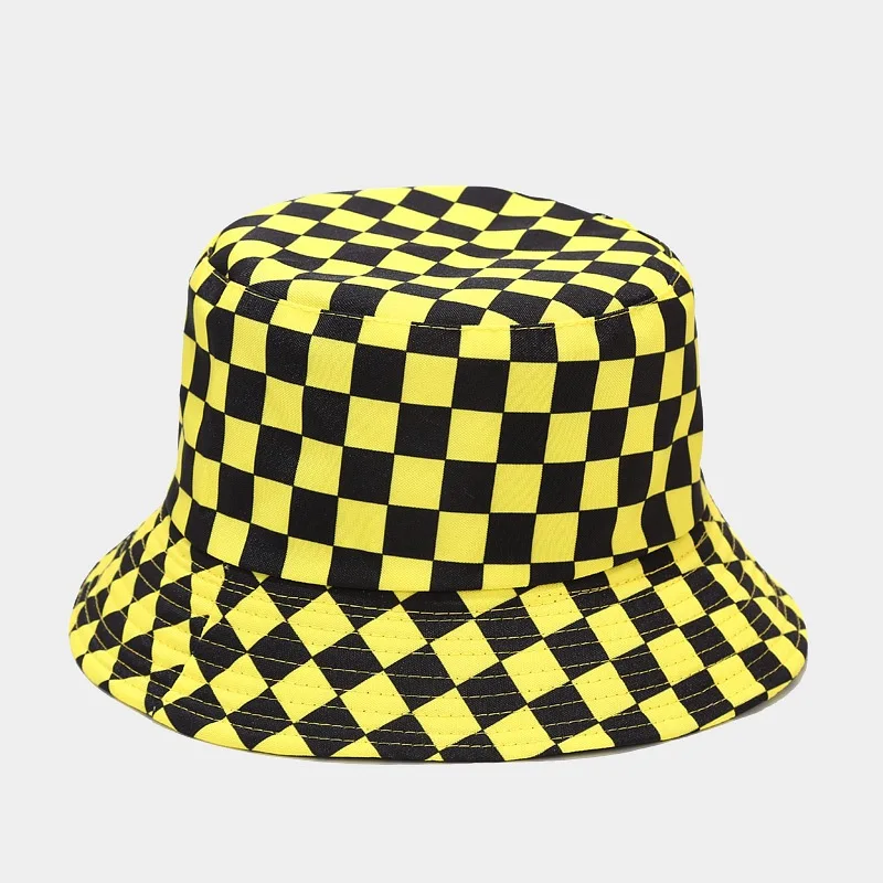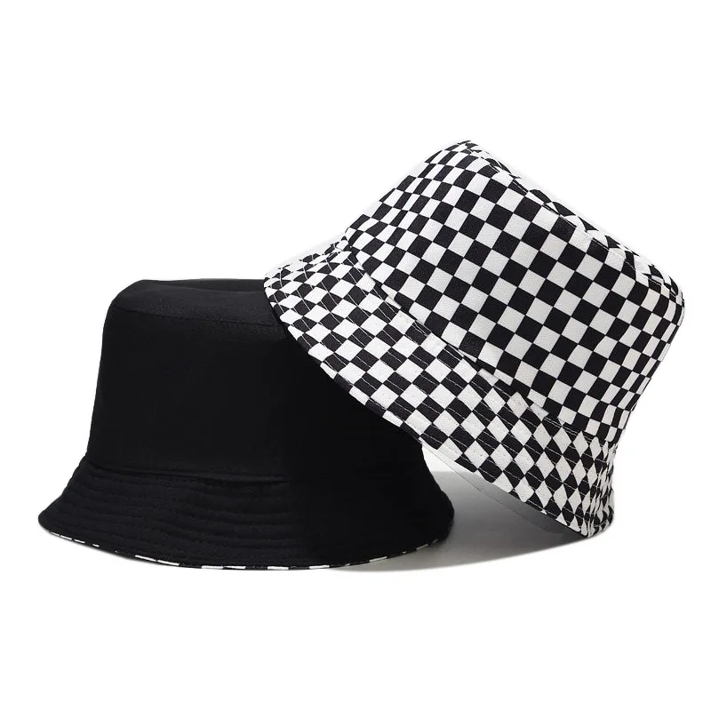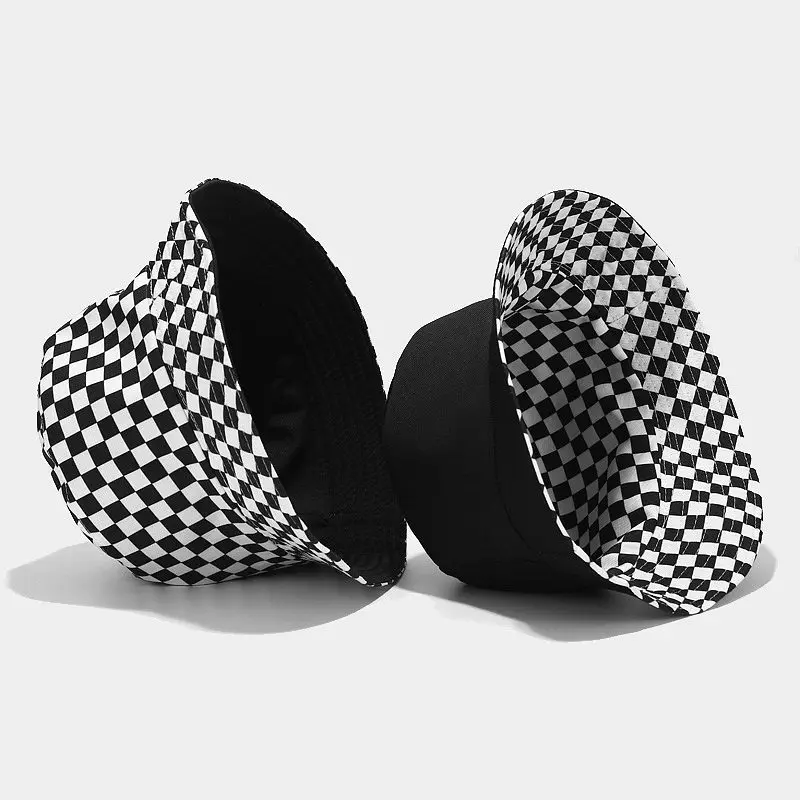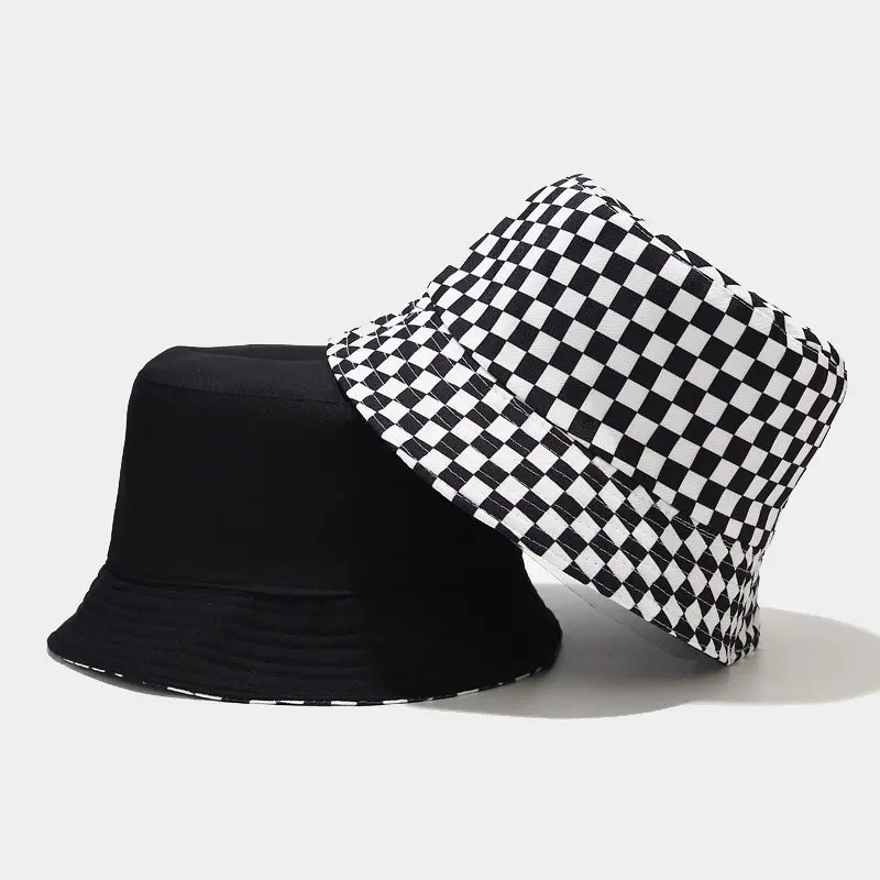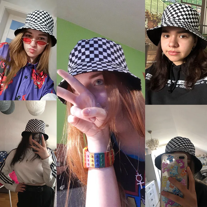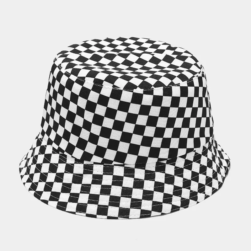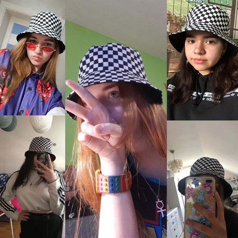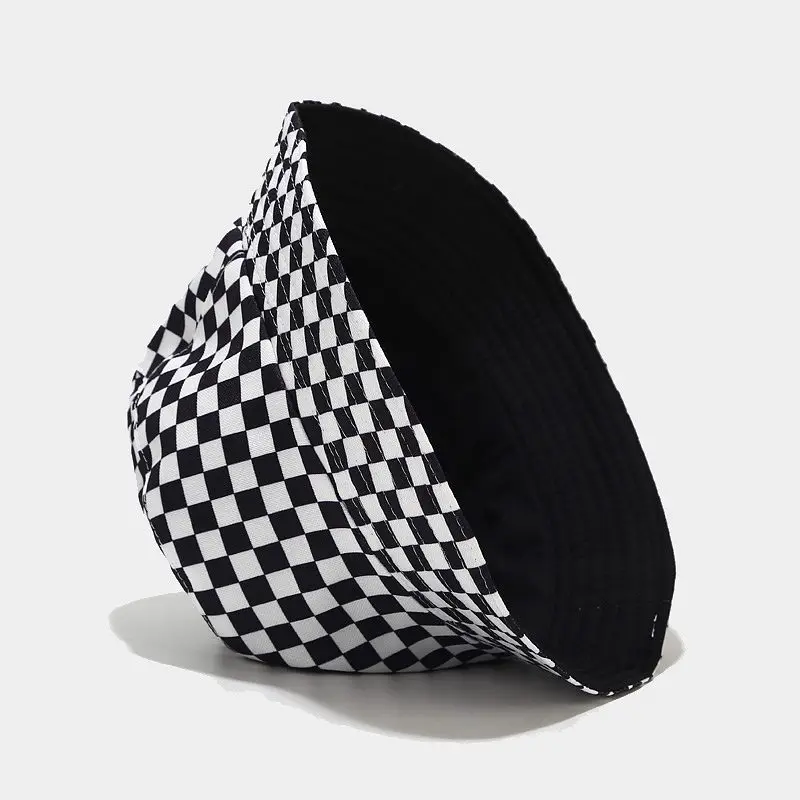 2021 New Cap Black White Grid Bucket Hat Flat Fishing Hat Hip-Hop Plaid Cap Hats Autumn Fisherman Hat For Women Girls