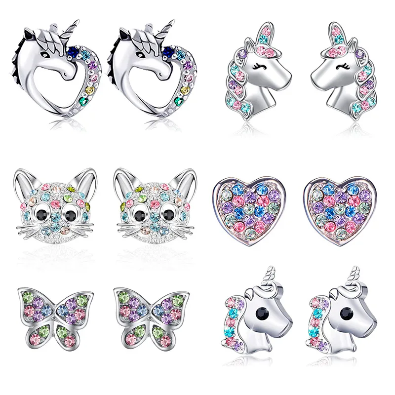 Be the first to review “2021 New Fashion Unicorn Cat Butterfly Rainbow Stud Earrings Women Gilrs Colorful Zircon Ear Stud Jewelry Children Accessories”