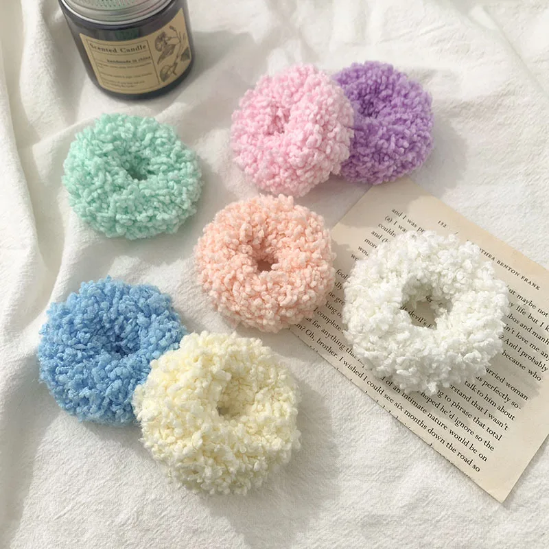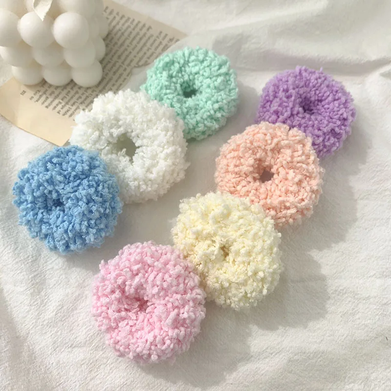 2021 New Girls Colorful Luminous Plush Scrunchies Hairband Women Ponytail Headwear Elastic Hair Bands Fashion Hair Accessories