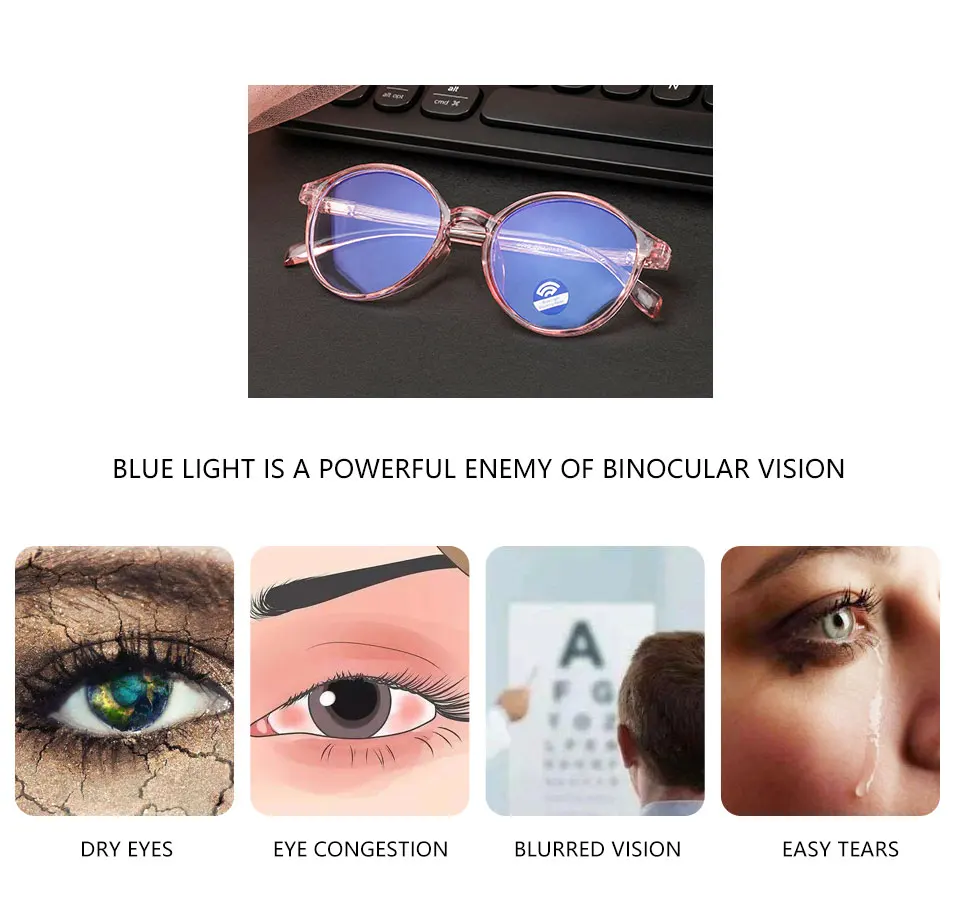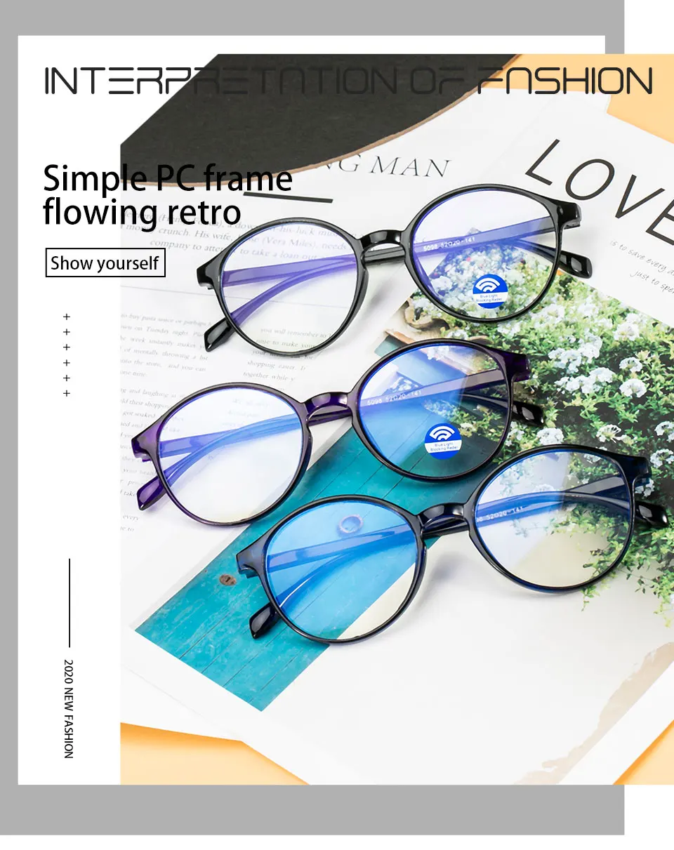 2021 New Glasses Anti Blue Ray Glasses Blue Light Blocking Glasses Optical Eye Spectacle UV Blocking Gaming Filter Round Glasses