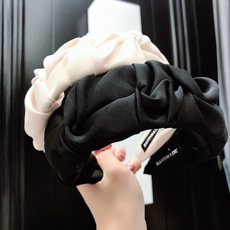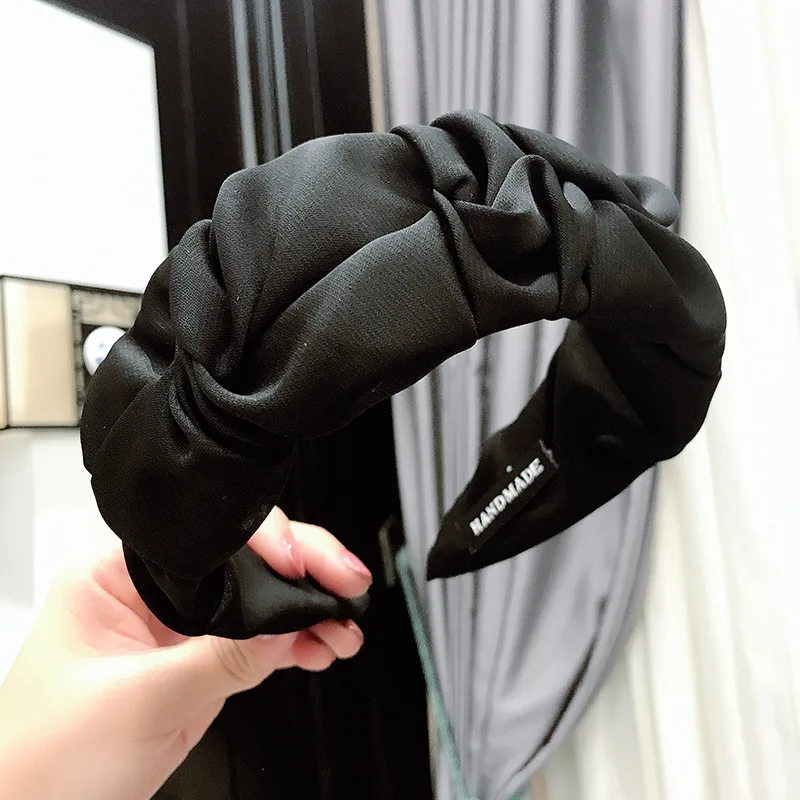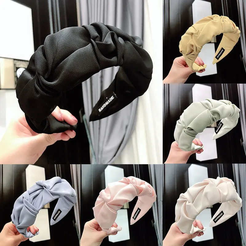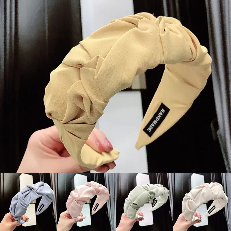 2021 New Satin Silk Wrinkled Headbands Women Candy Color Hairbands wide-Brim Knotted Hair Hoop Headband Girls Hair Accessories