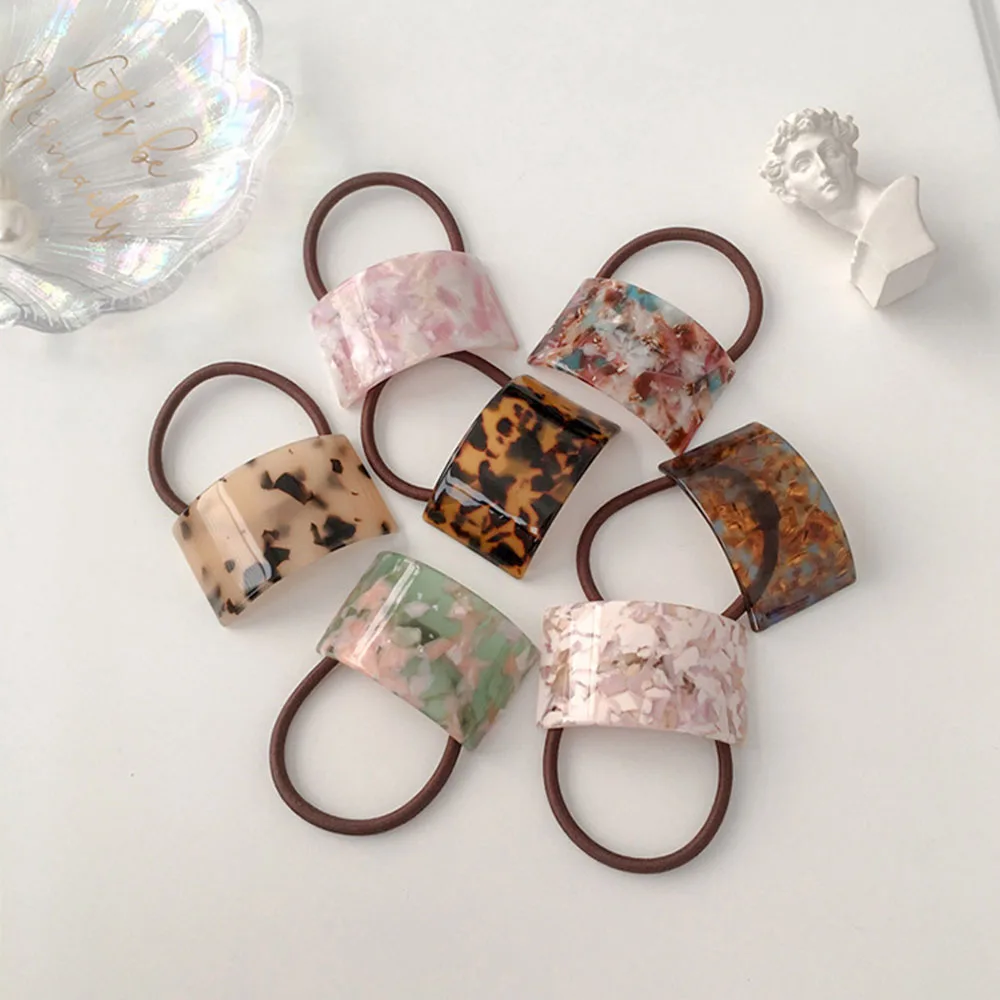 2021 New Trendy Retro Acetate Colorful Geometric Curved Leopard Print Elastic Head Rope Hair Accessories for Women Girl