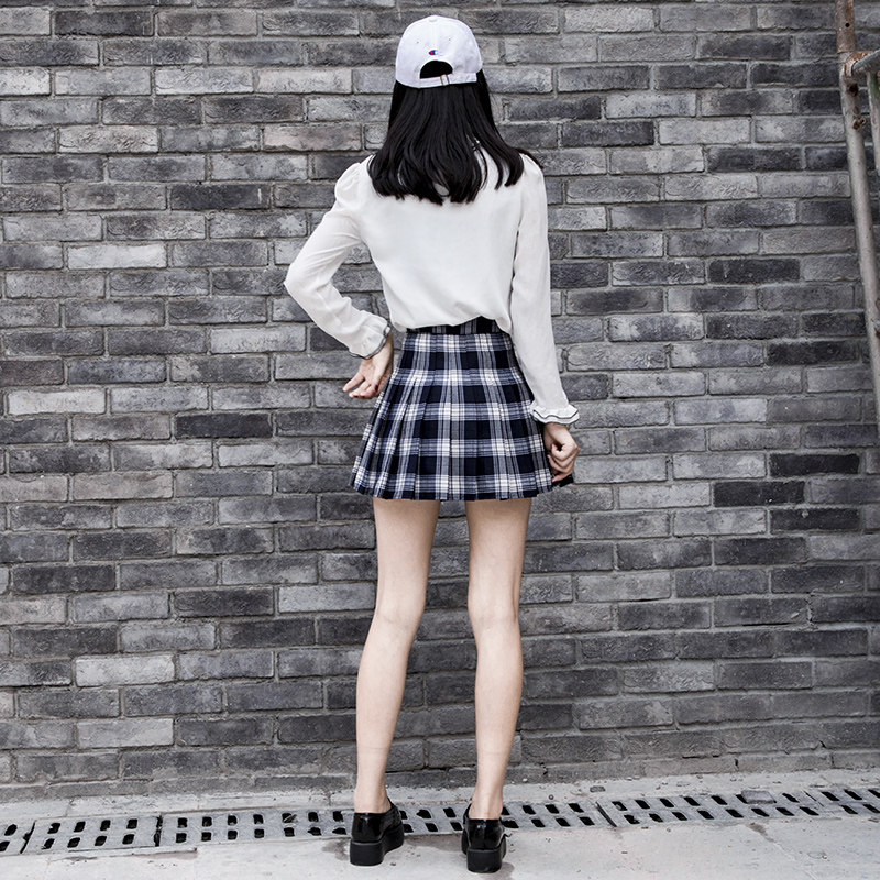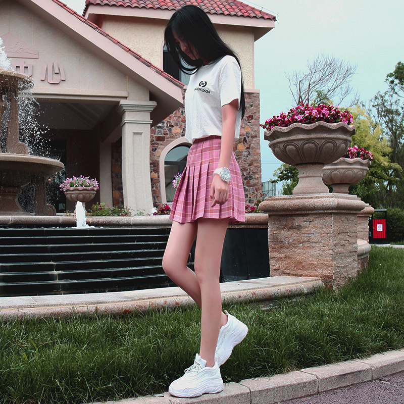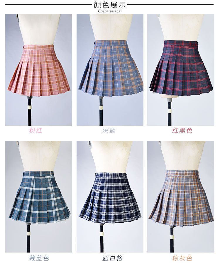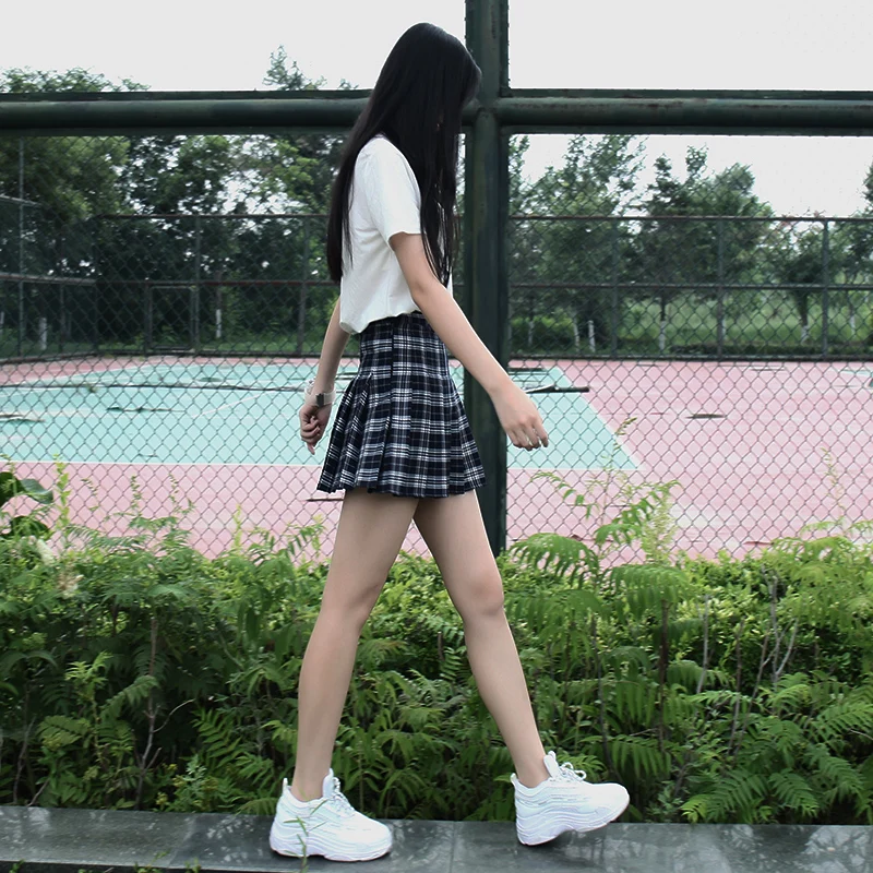 2021 New Women Fall/Winter Skirt High Waist Folded Skirt A line above knee length Skirt tennis skirt Harajuku Women Skirt Plaid