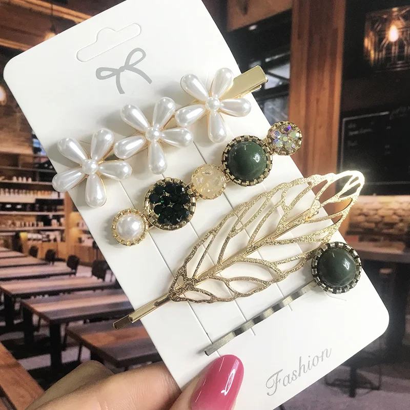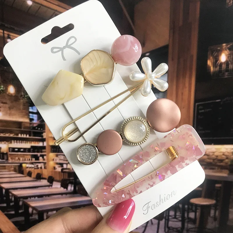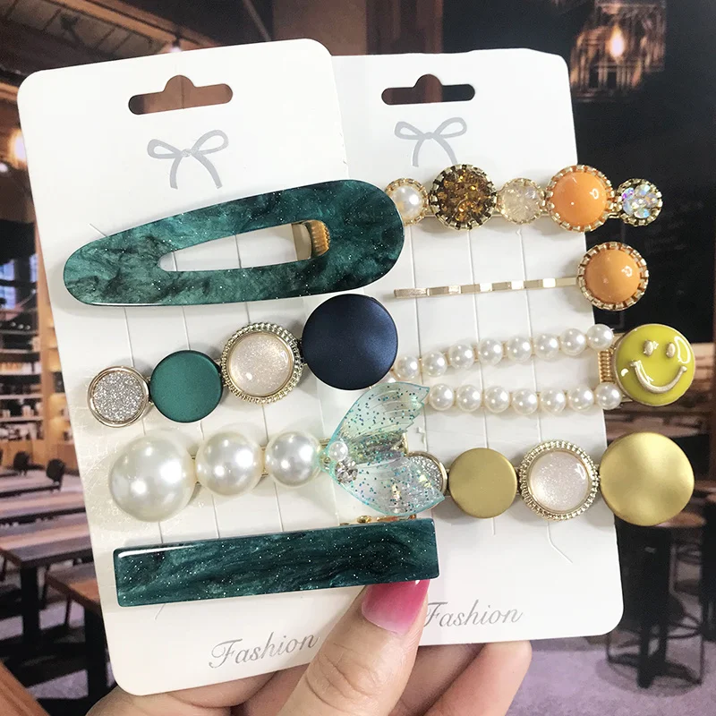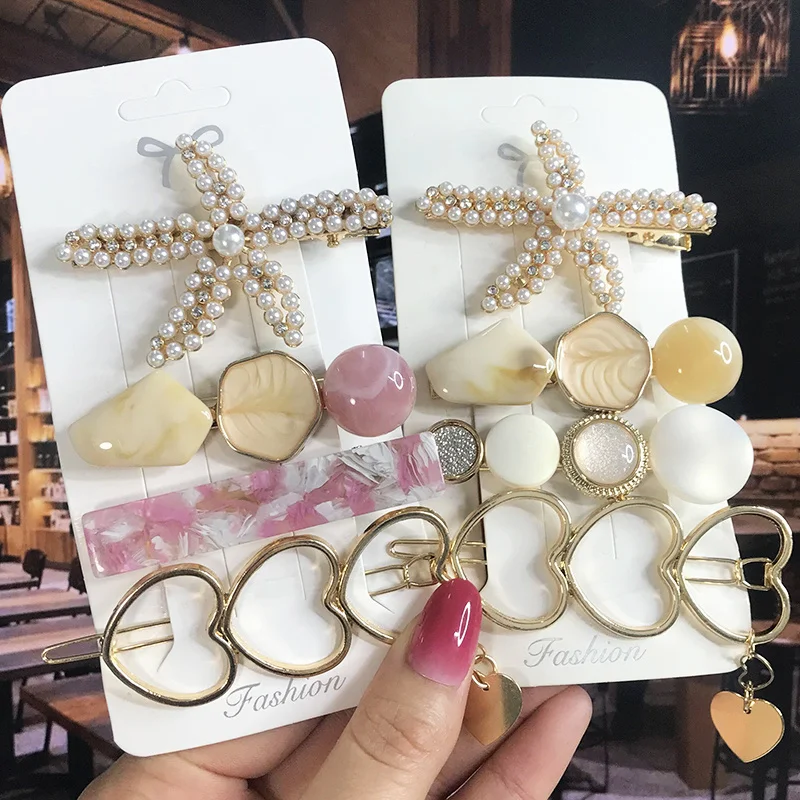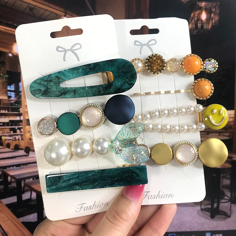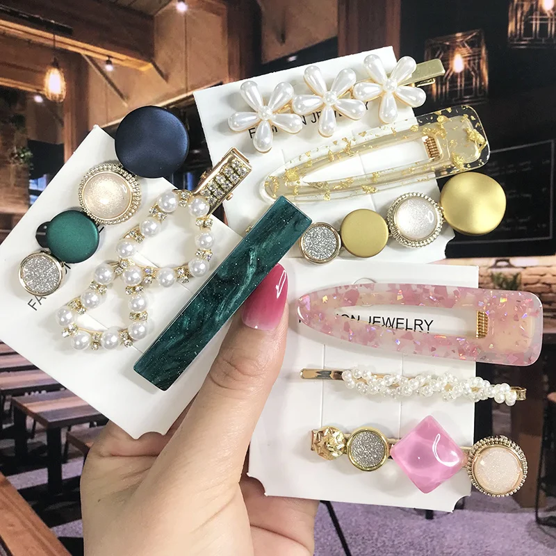 2021 Pearl Crystal Acrylic Hair Clips Set for Women Retro Geometric Barrettes Hairpin Girl Hair Accessories Fashion Jewelry