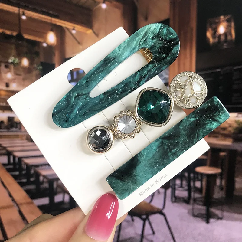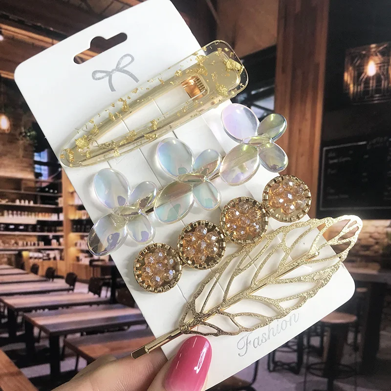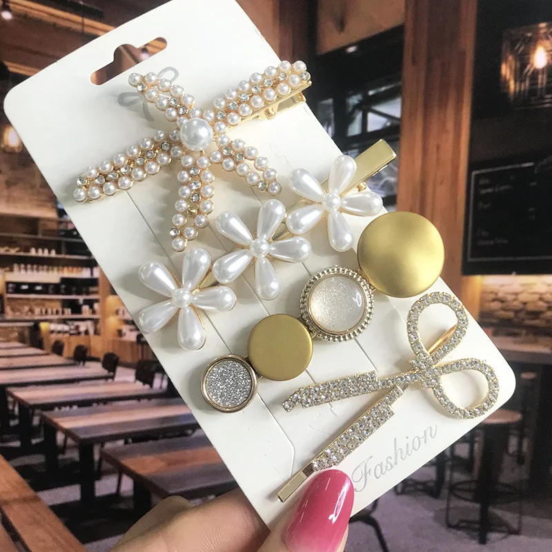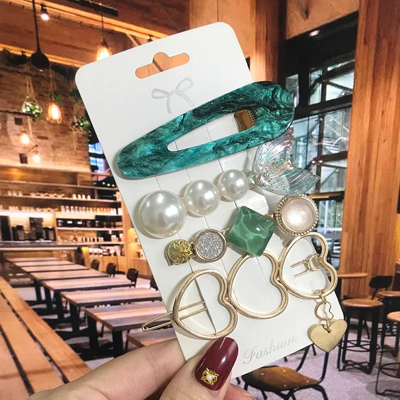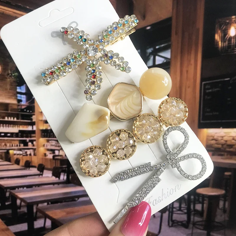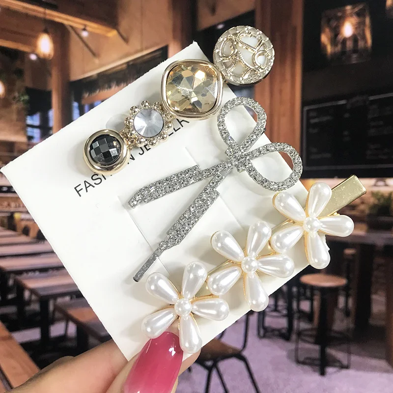 2021 Pearl Crystal Acrylic Hair Clips Set for Women Retro Geometric Barrettes Hairpin Girl Hair Accessories Fashion Jewelry