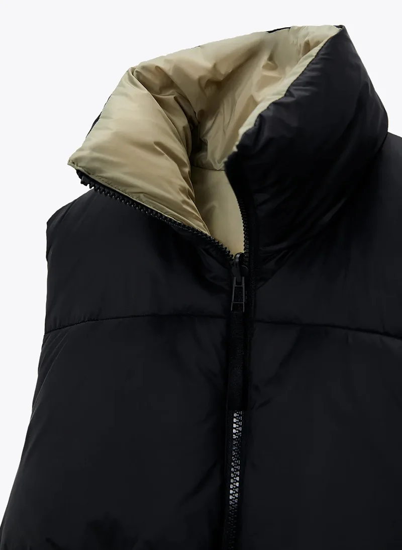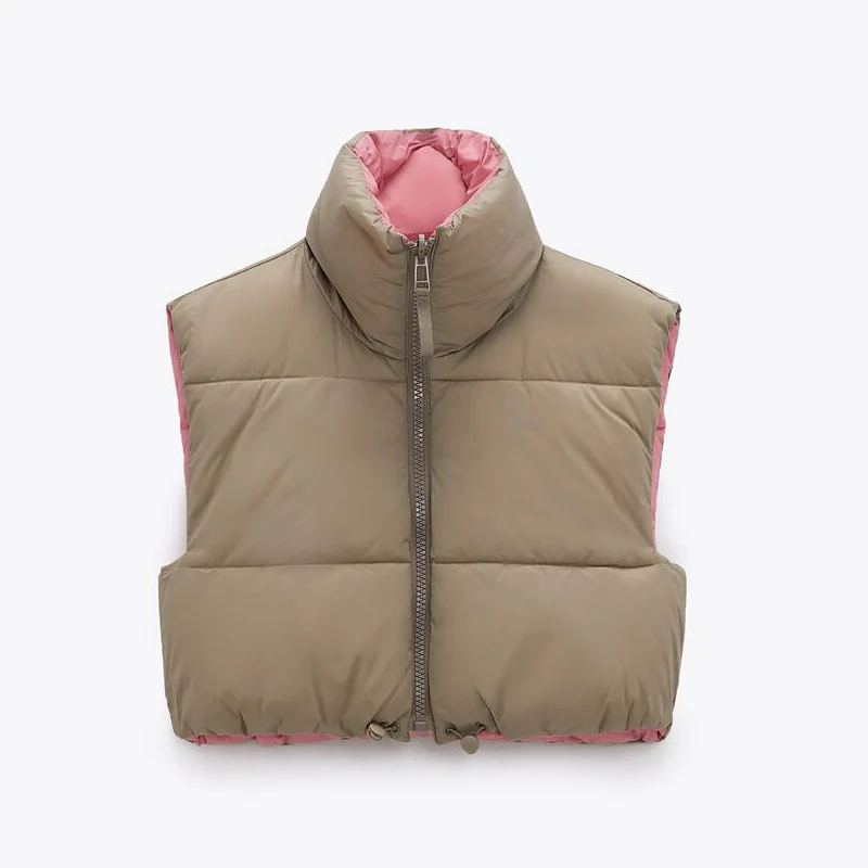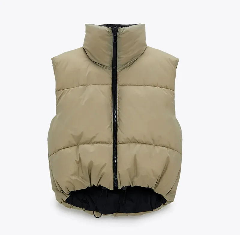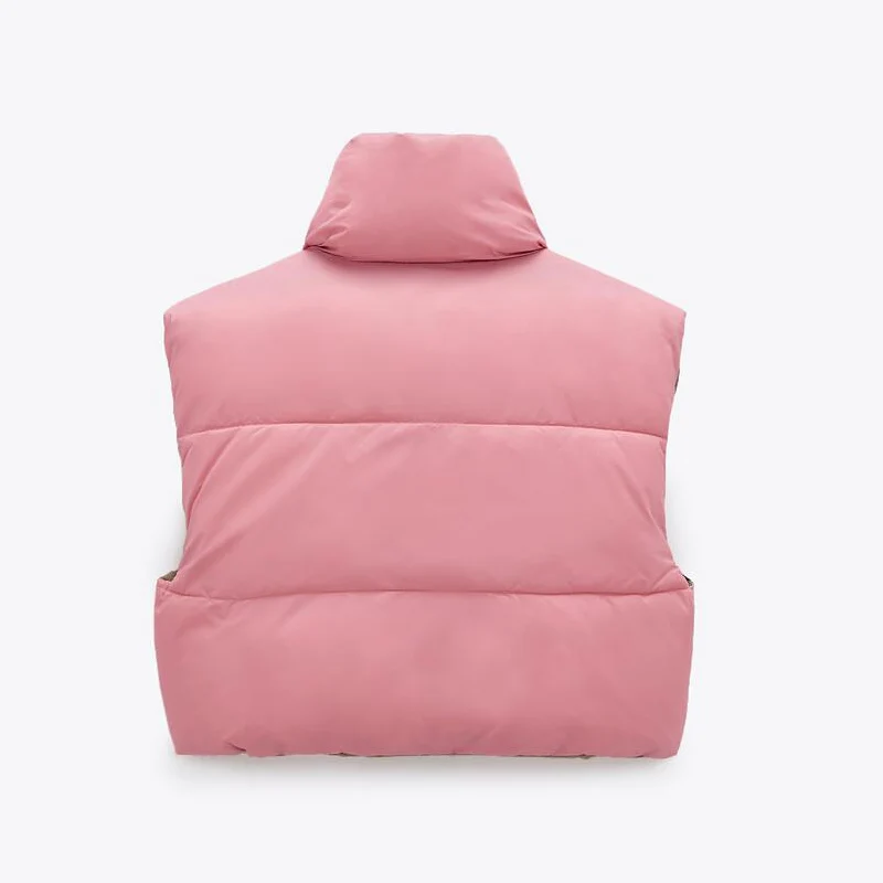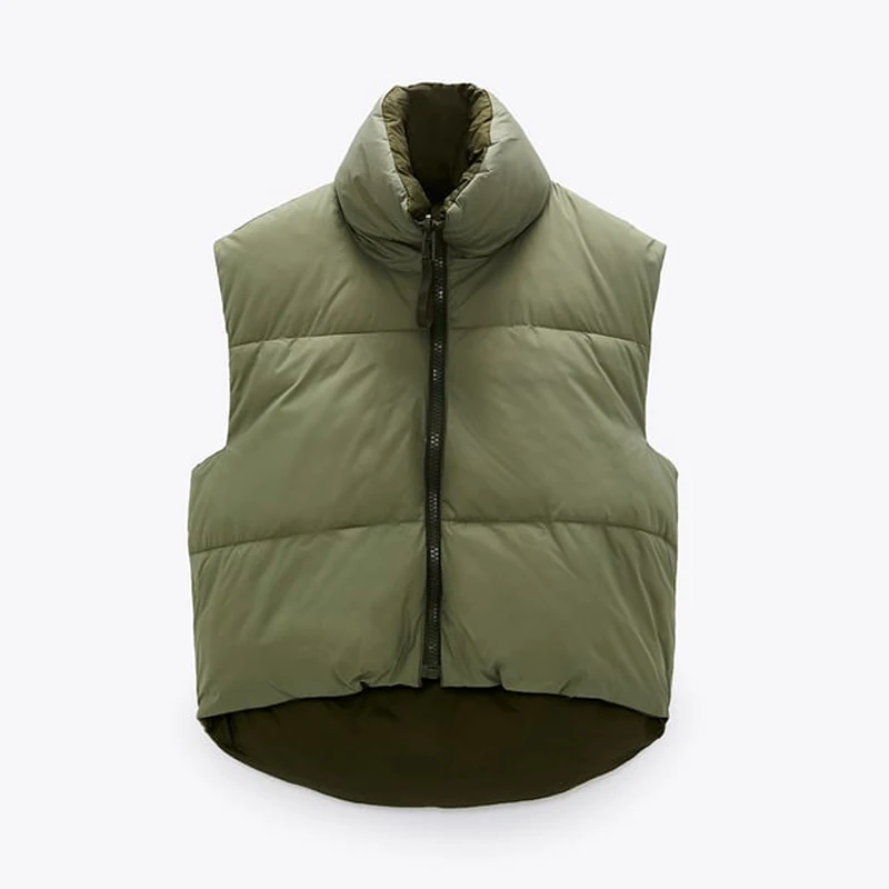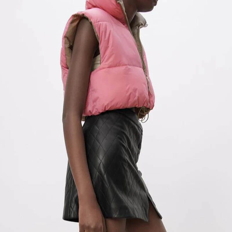 2021 Spring Black Cropped Vest Coat Women Fashion Warm Sleeveless Parkas High Collar Waistcoat Female Casual Outerwear Chic Top