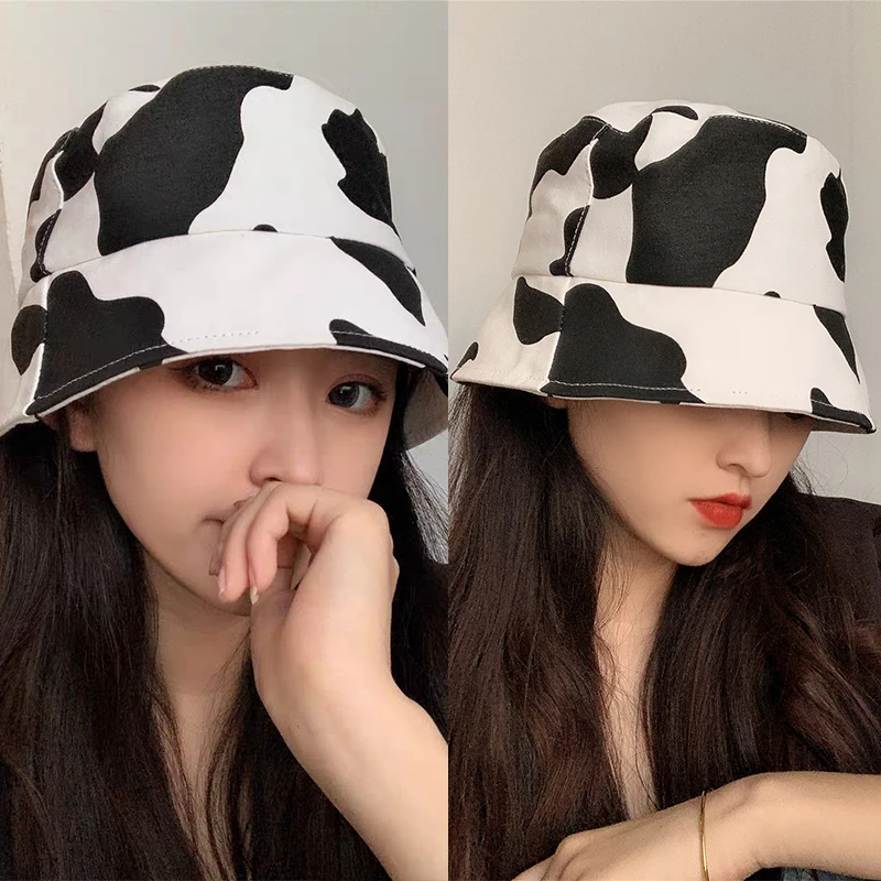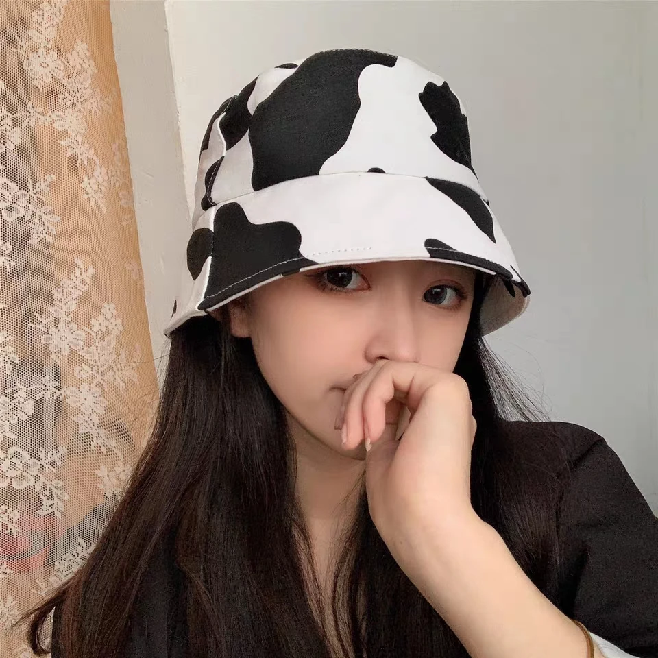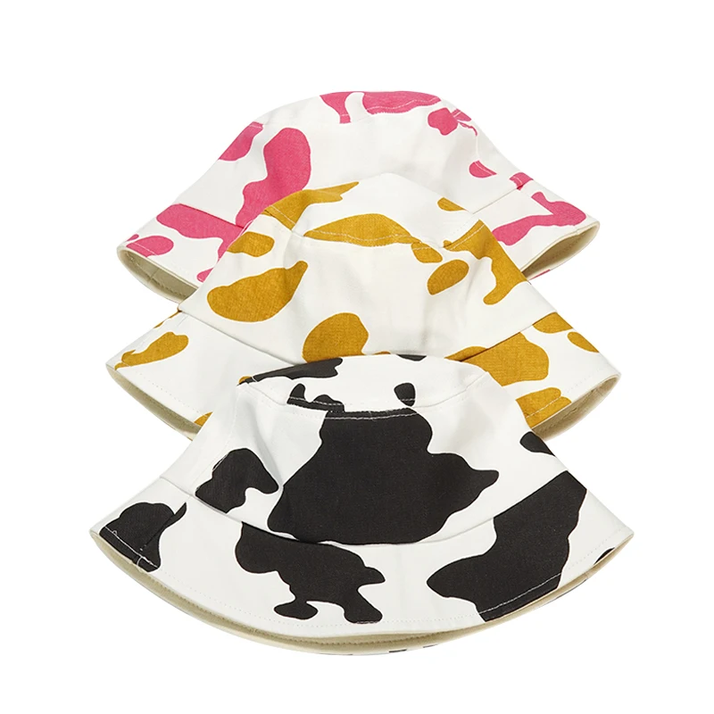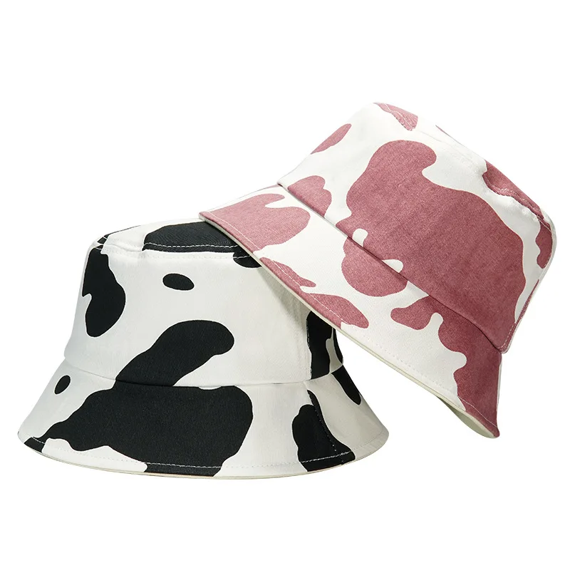2021 Spring Summer Cow Print Bucket Hats Women Designer Bucket Sun Cap Cotton Hip Hop Fisherman’s hat Female