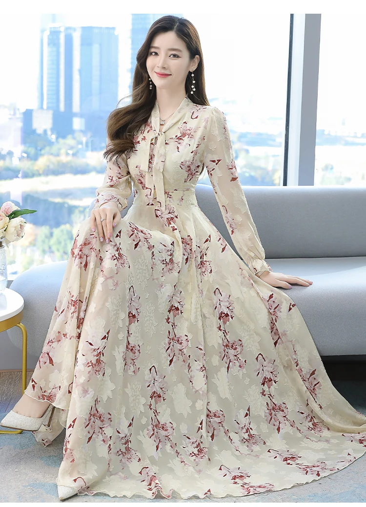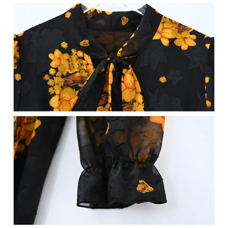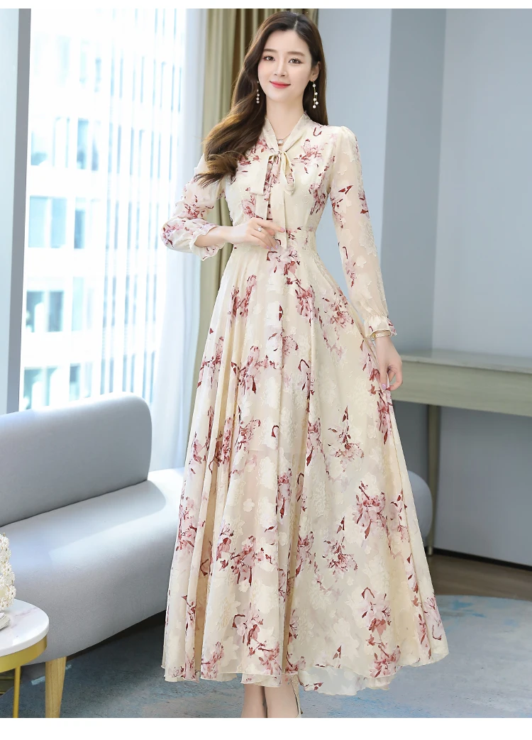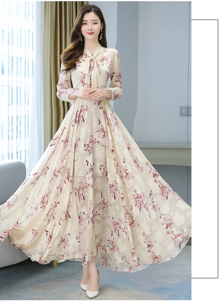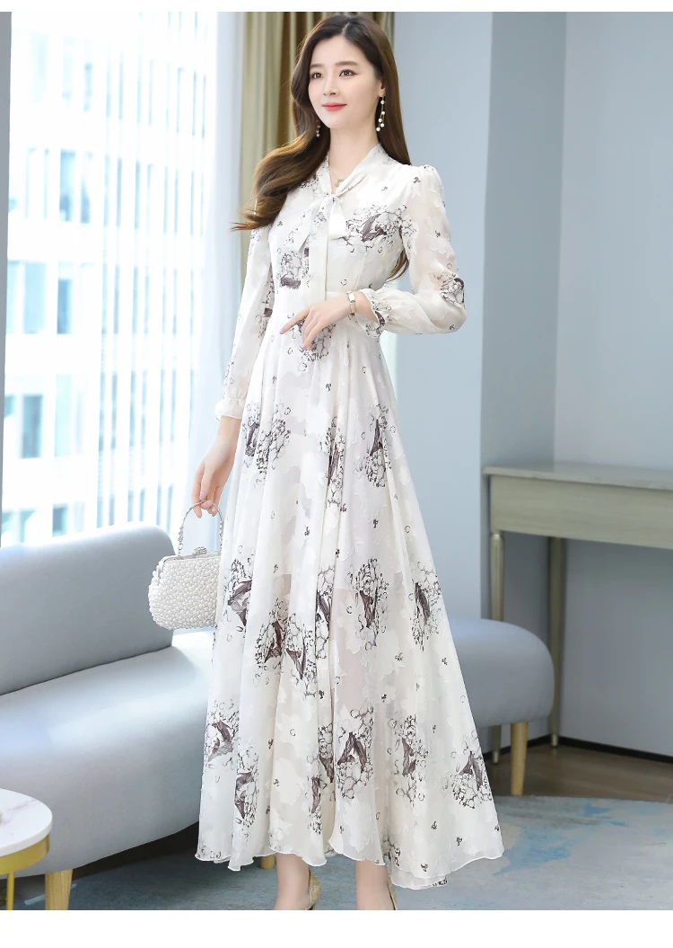 DROWYD 2021 Summer New Arrival 2021 Summer Black Print Maxi Dress New Arrival High Quality Plus Size S-4XL Flower Long Sleeve Women Chiffon Long Dress Vestidos