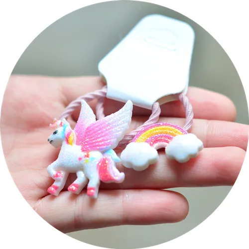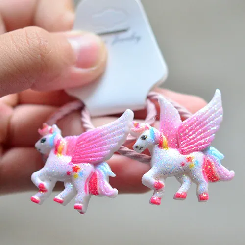 2PCS New Cartoon Cute Wings Pony Kids Elastic Hair Bands Princess Headwear Children Ropes Girls Accessories Baby Headdress
