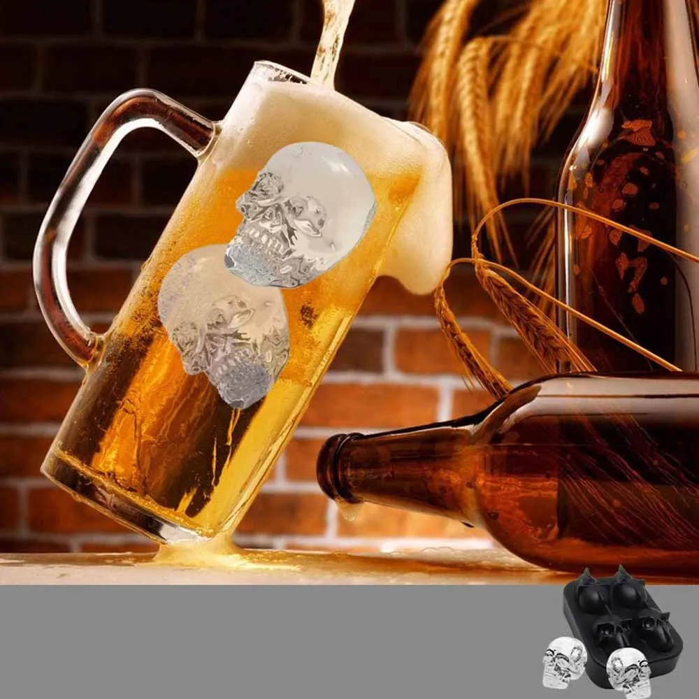 3D Skull Silicone Mold Ice Cube Maker 4-in-1 Chocolate Mould Tray Ice Cream DIY Tool Whiskey Wine Cocktail Ice Cube Best Sellers