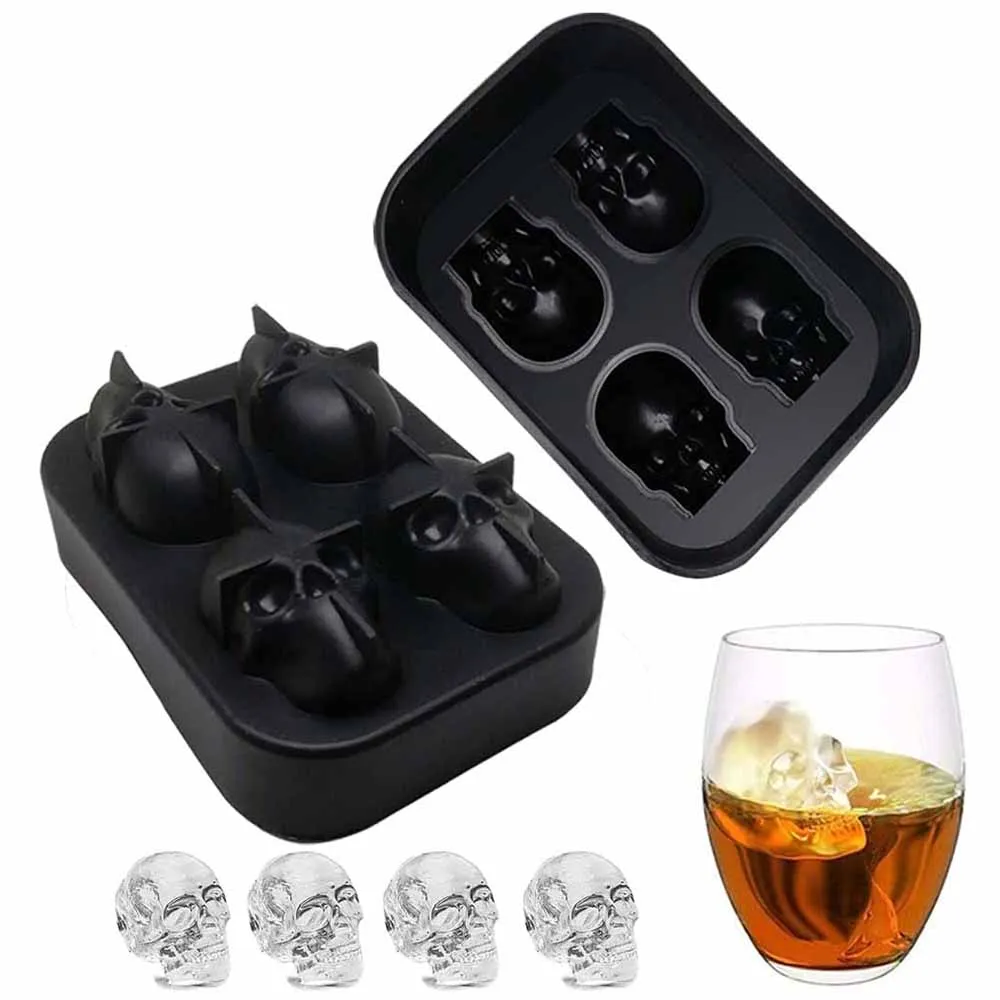 3D Skull Silicone Mold Ice Cube Maker 4-in-1 Chocolate Mould Tray Ice Cream DIY Tool Whiskey Wine Cocktail Ice Cube Best Sellers