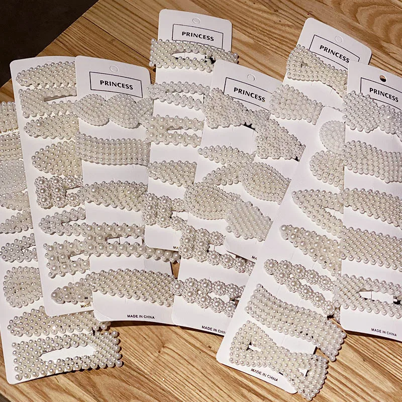 5/7/8PCS/Set Women Girls Elegant Imitation Pearls Geometric Hairpins Sweet Hair Ornament Clips Barrettes Fashion Hair Accessories