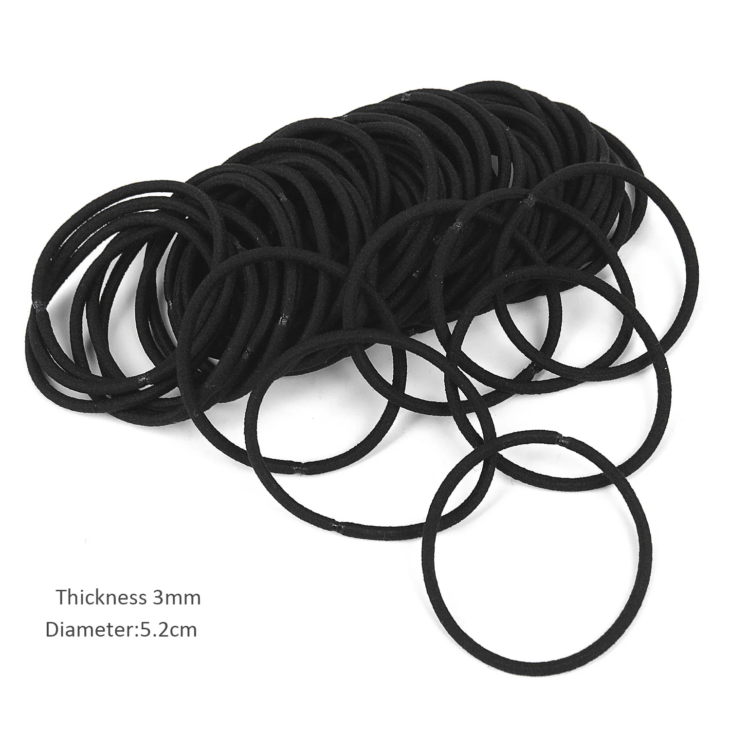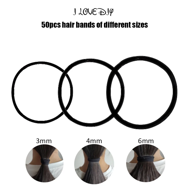 50pcs Black Hair Bands for Women Girls Step Size Hair Elastic Rubber Bands Basic Hair Ties Rope Ponytail Holder Hairbands Thick