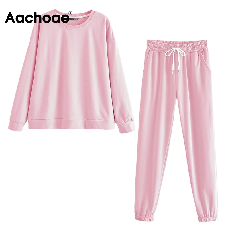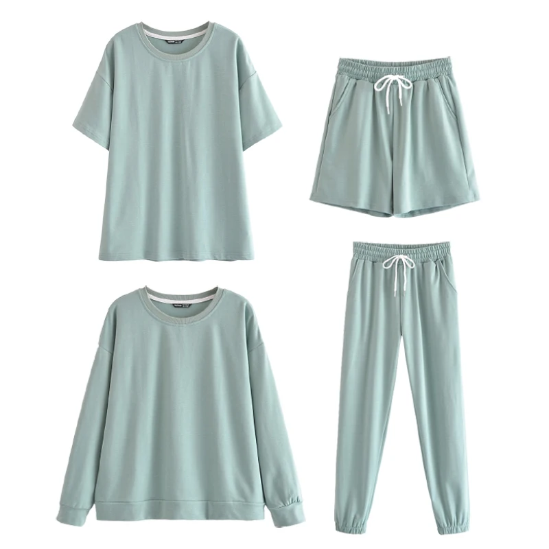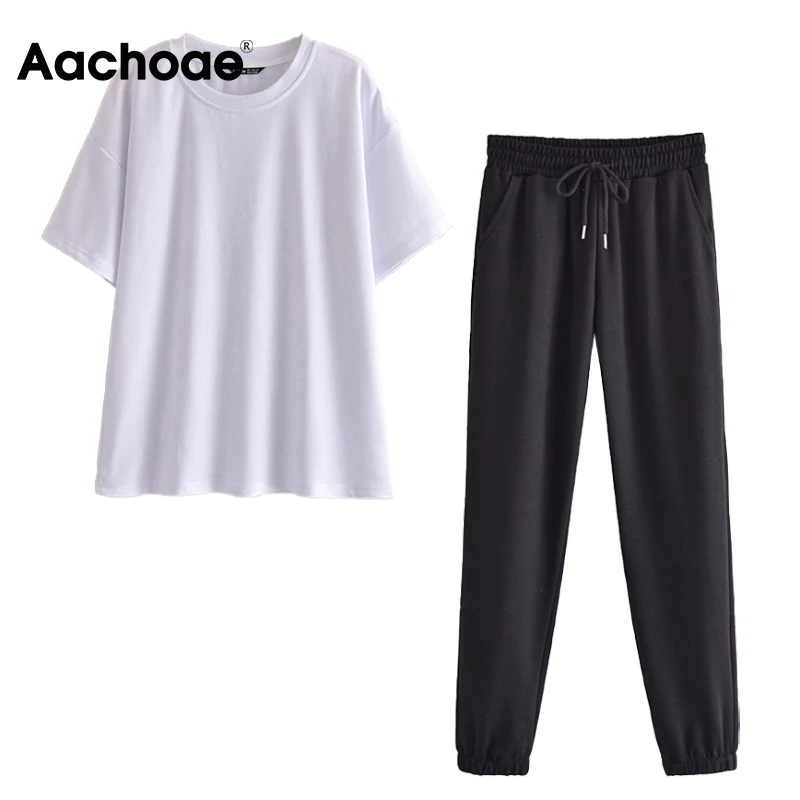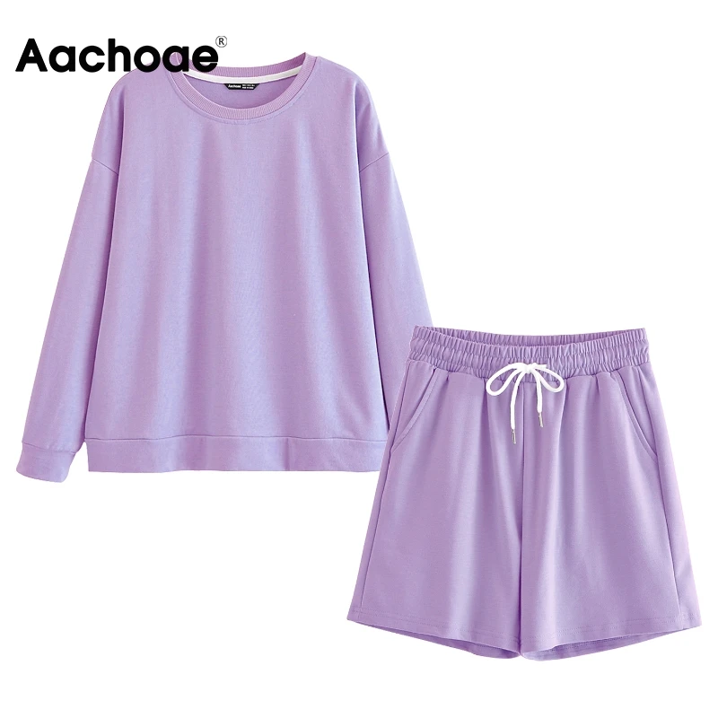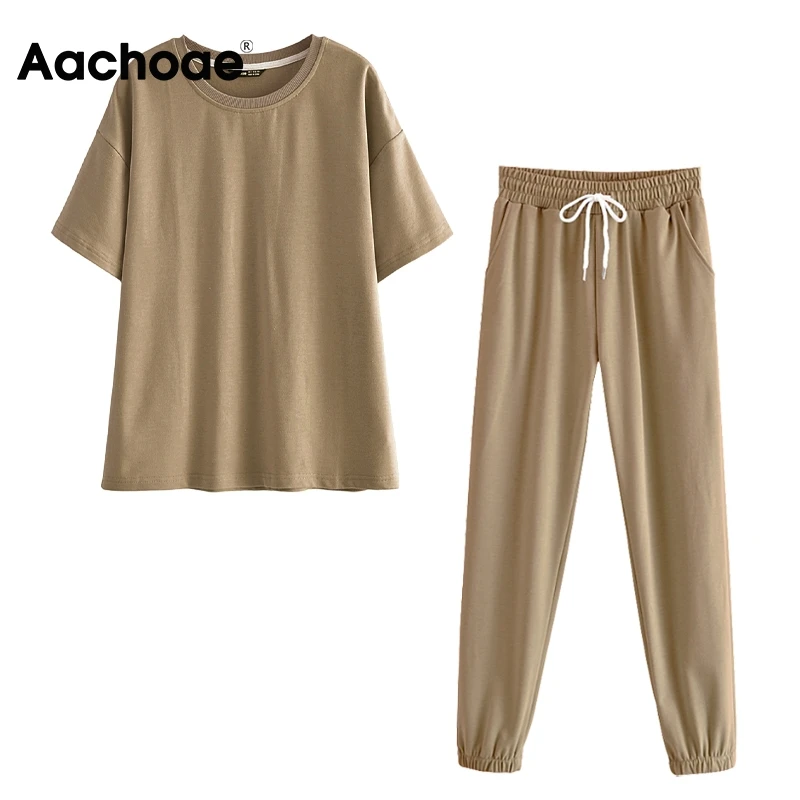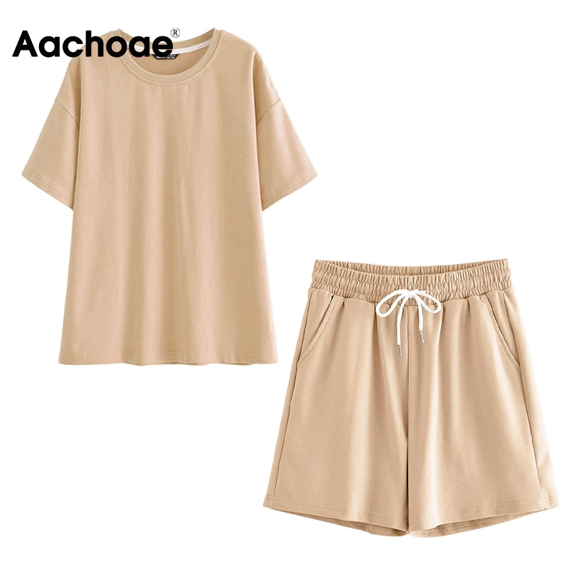 Aachoae Women Solid Casual Tracksuits 2021 Loose O Neck Tshirt Shorts Pants Suits Female Summer Home Style Two Piece Sets
