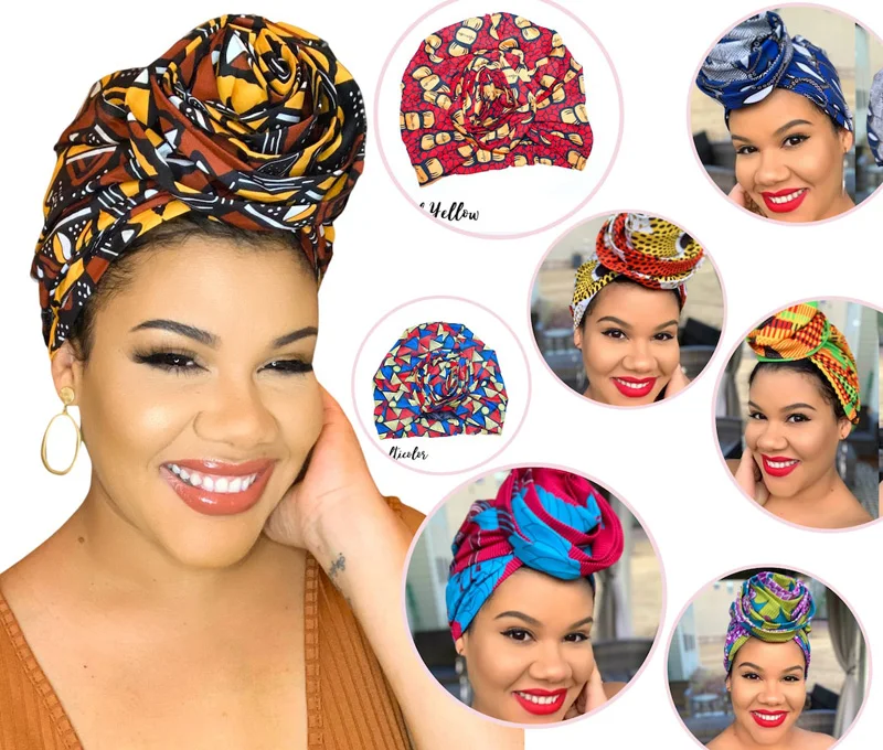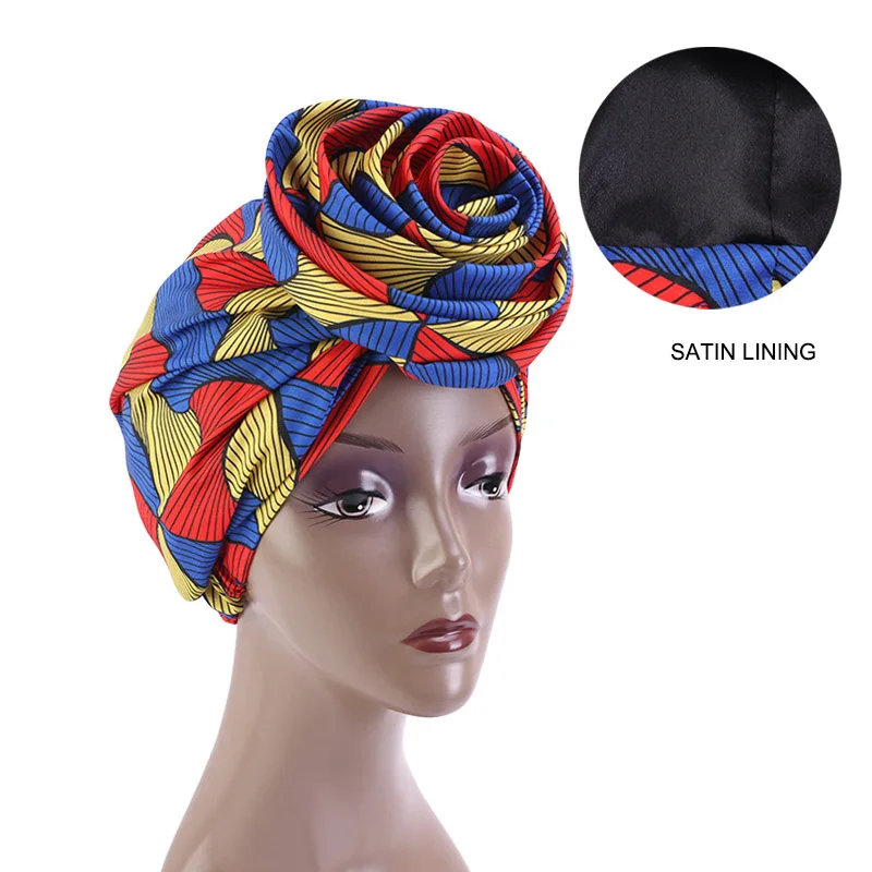 African Print Stretch Bandana Head Wrap Long Scarf satin Floral Ankara Dashiki Women Party Turban Headwear Cap Hair Accessories
