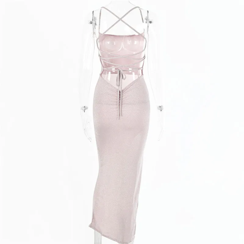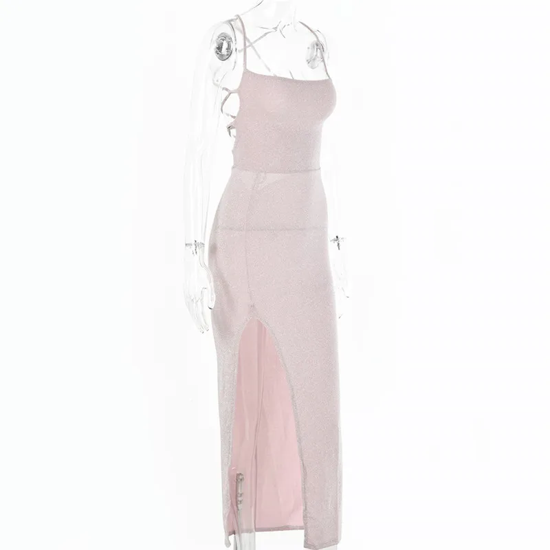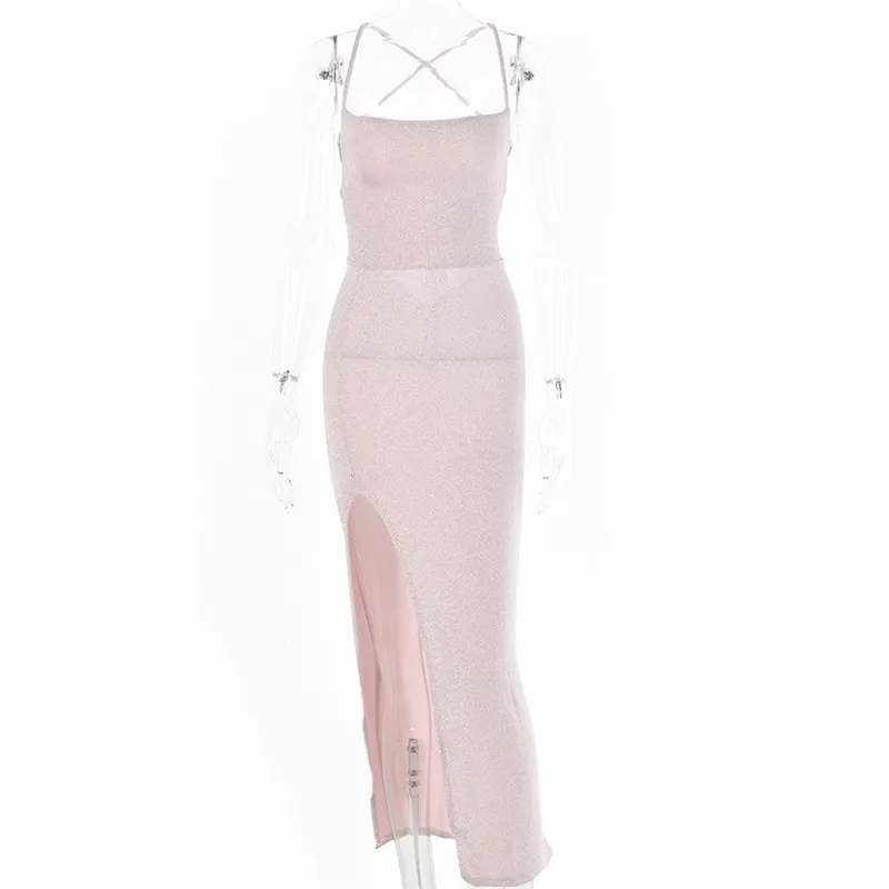 Articat Long Backless Maxi Dress Women Spaghetti Strap High Split Bodycon Bandage Summer Dress Elegant Slim Party Dress Vestidos