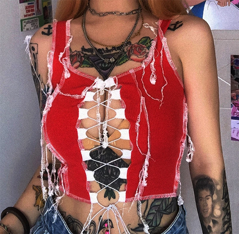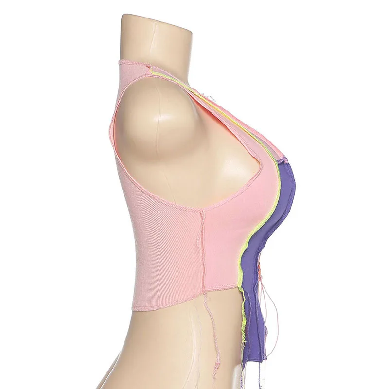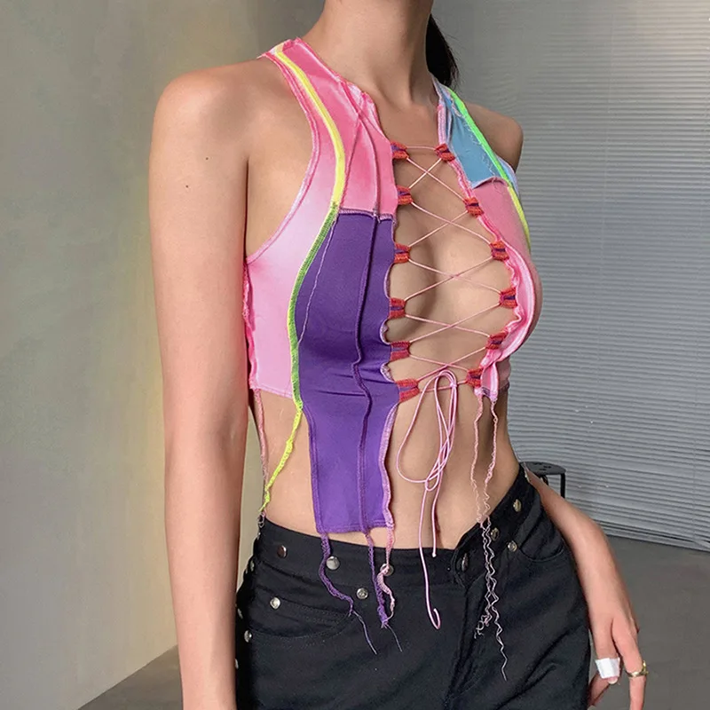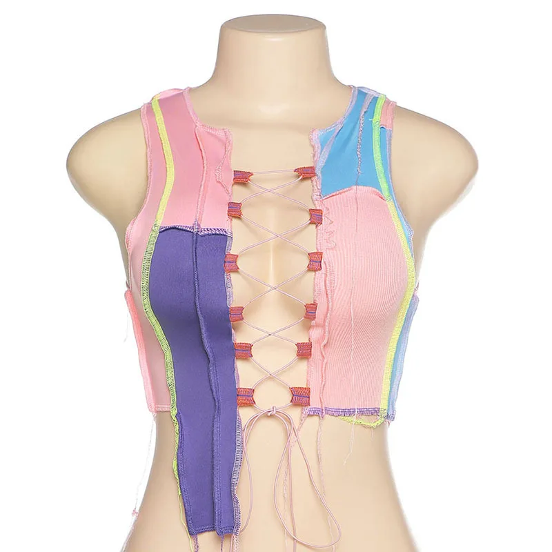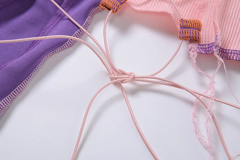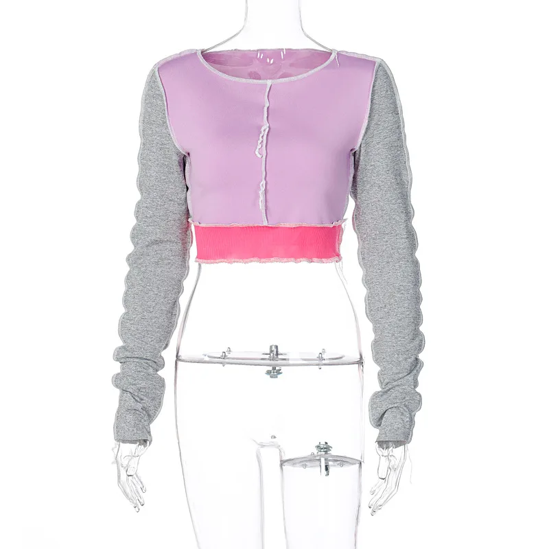 Artsu 8 Colors Sexy Hollow Out Women Long Sleeve Crop Tops Striped Patchwork Drawstring Ribbed Bandage Fitness Clothes AS41186