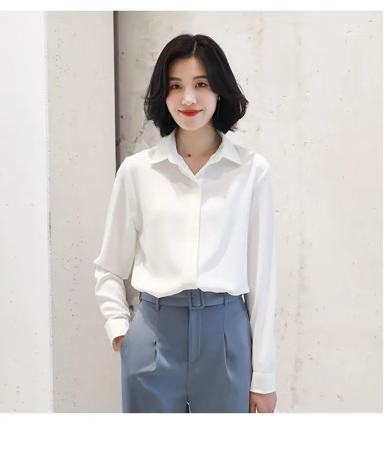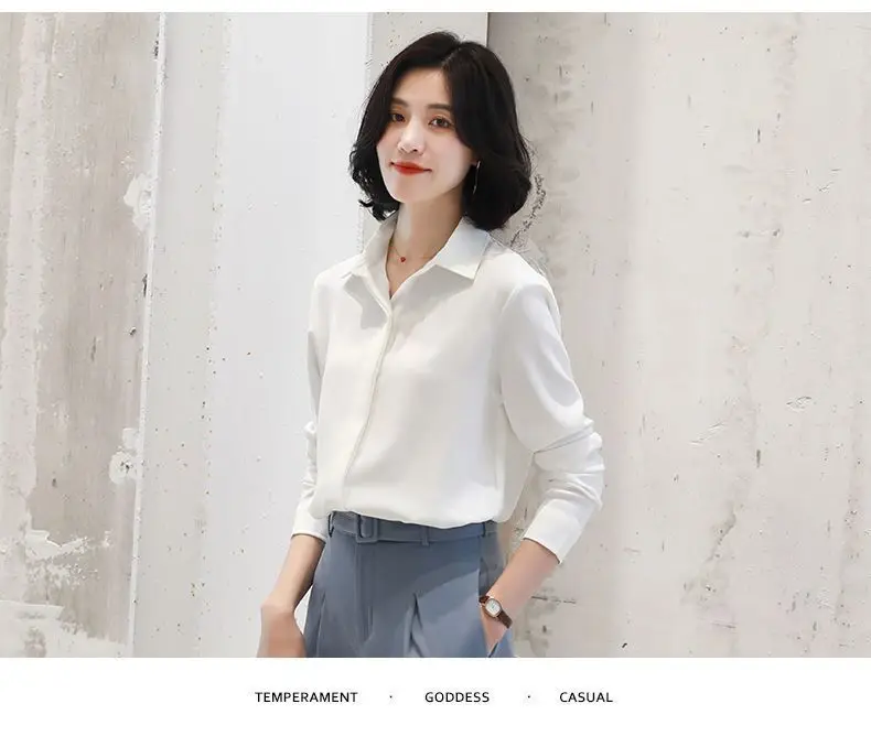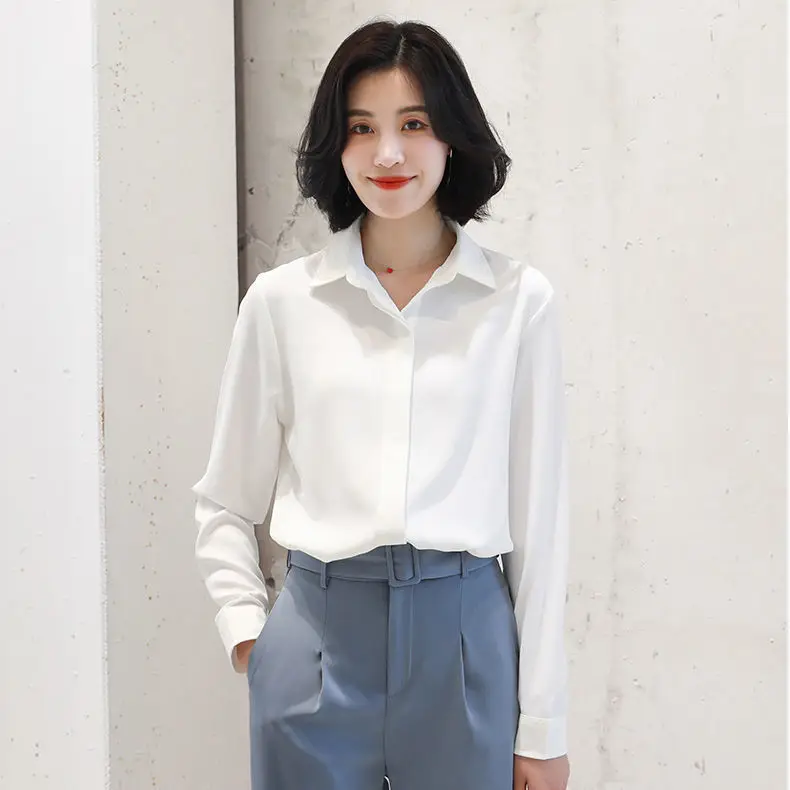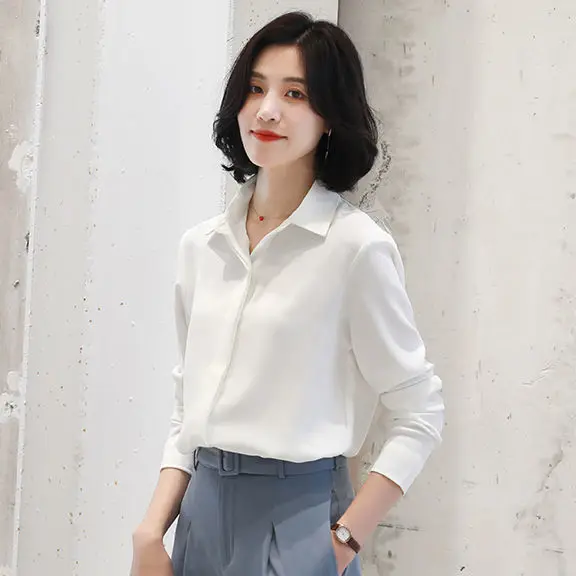 Autumn Fashion Button Up Shirt Vintage Blouse Women White Casual Office Lady Long Sleeves Female Loose Street Shirts Clothes Top