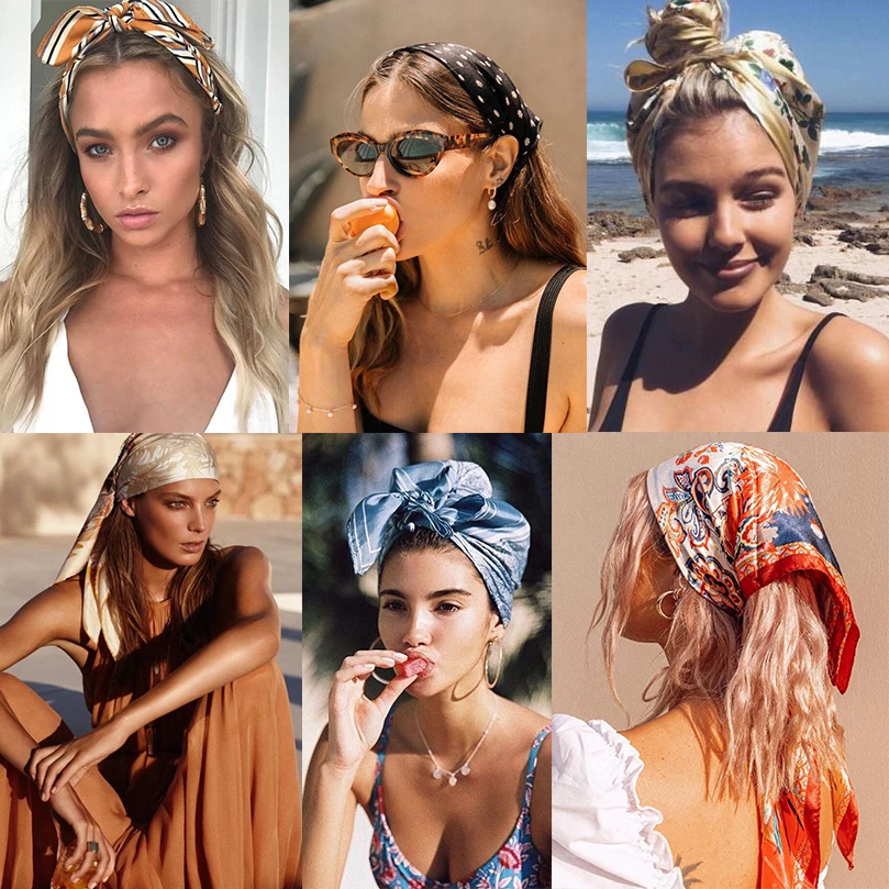 AWAYTR Print Scrunchies Hair Scarf Bohemia Women Ribbon Hairbands Streamers Bow Hair Rope Ties Holder Ponytail Hair Accessories