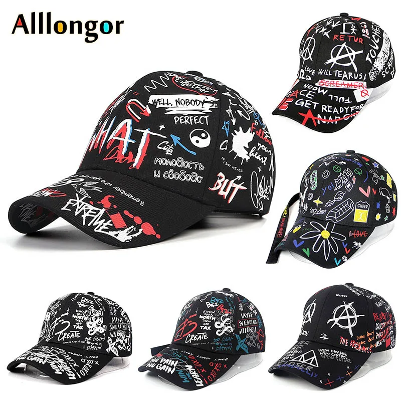 Graffiti Baseball Cap Women Men 2020 Summer Letter Print Snapback Gorras Para Hombre Casquette Femme Hip Hop Hats White Black