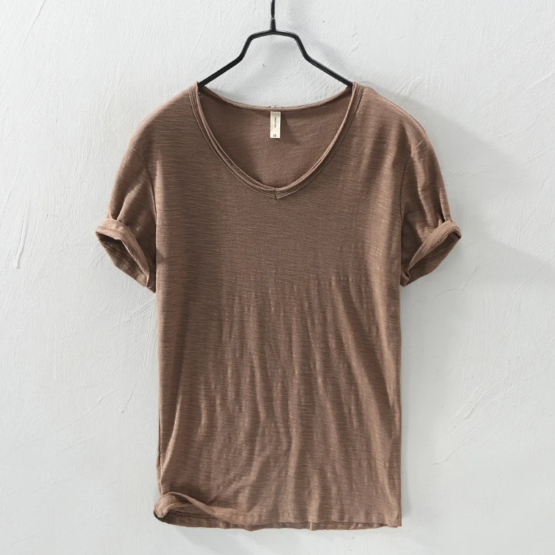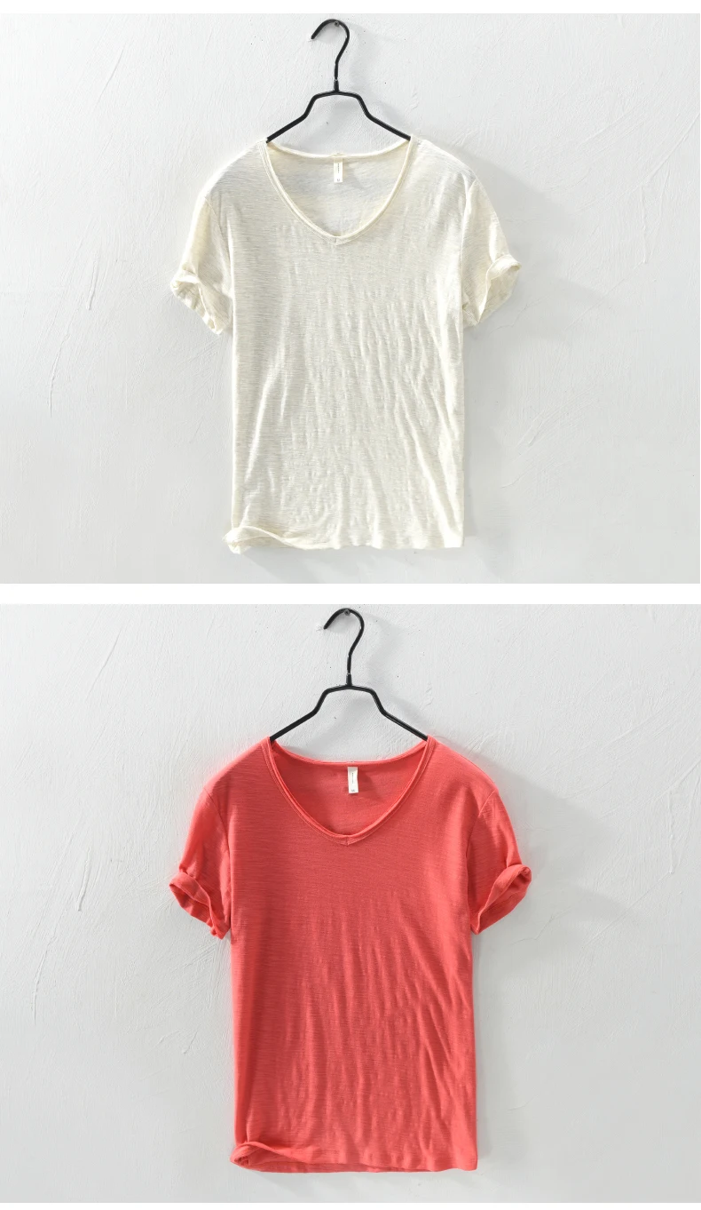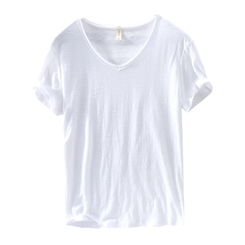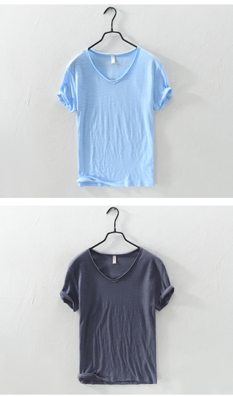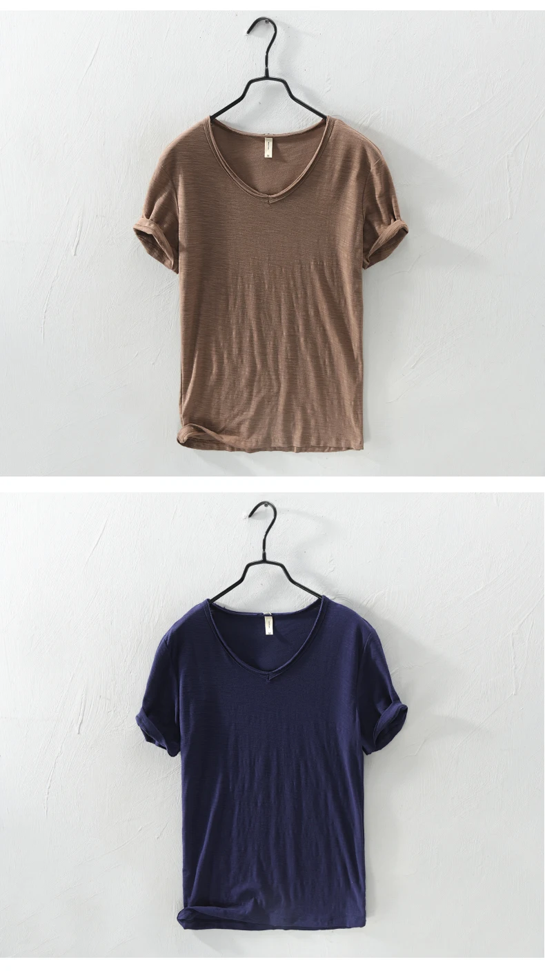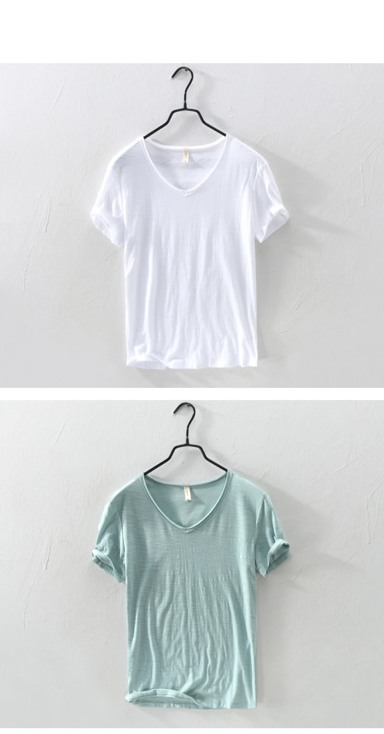 2020 Summer New 100% Cotton T-shirt Men V-neck Solid Color Casual T Shirt Basic Tees Plus Size Short Sleeve Tops Y2449