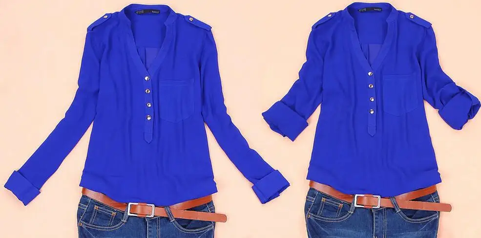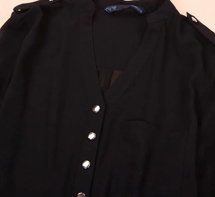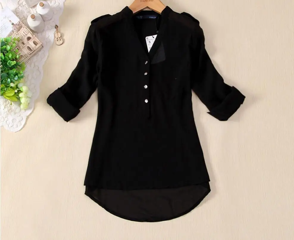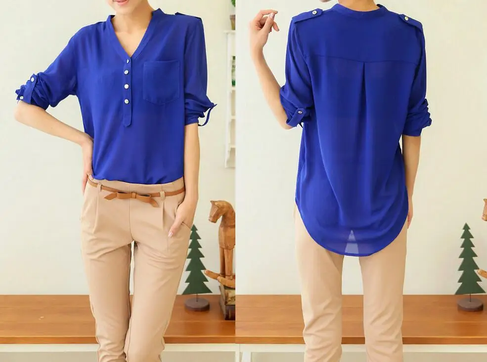 Black,White,Blue Women Chiffon Shirt 2019 Spring Summer Womens Long-sleeve Casual Chiffon Shirt V neck Blouse Pockets Plus Size