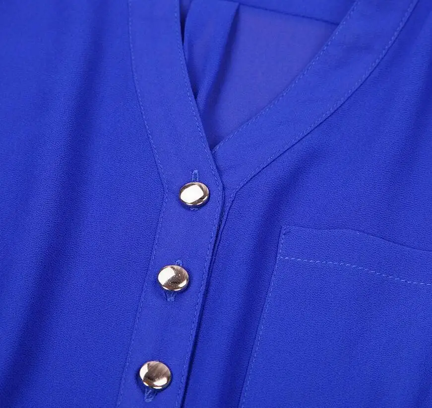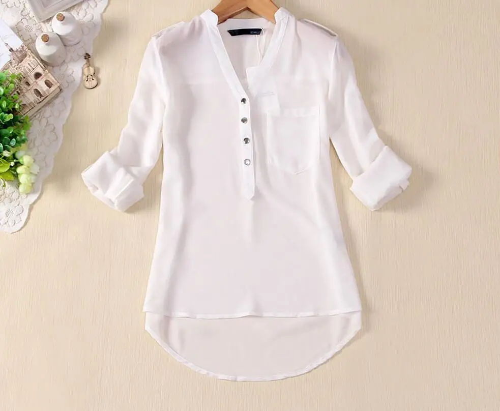 Black,White,Blue Women Chiffon Shirt 2019 Spring Summer Womens Long-sleeve Casual Chiffon Shirt V neck Blouse Pockets Plus Size
