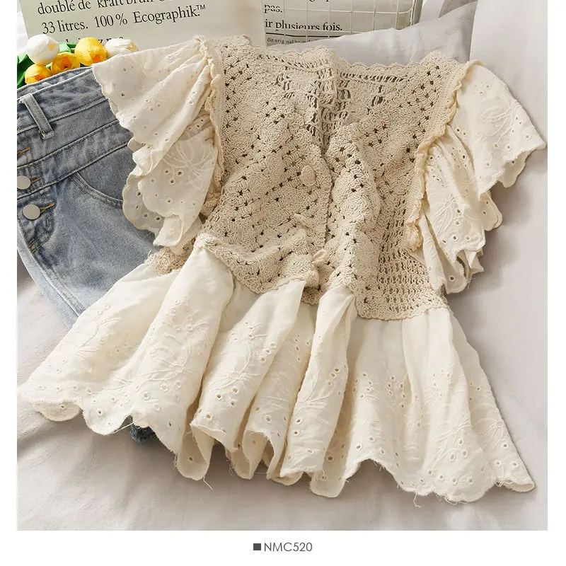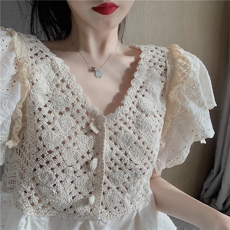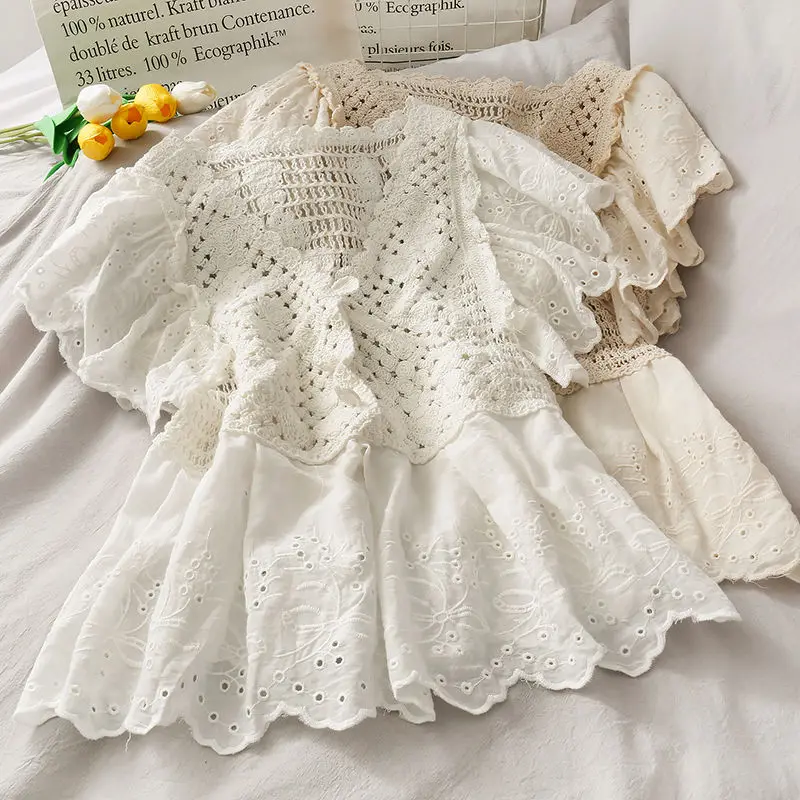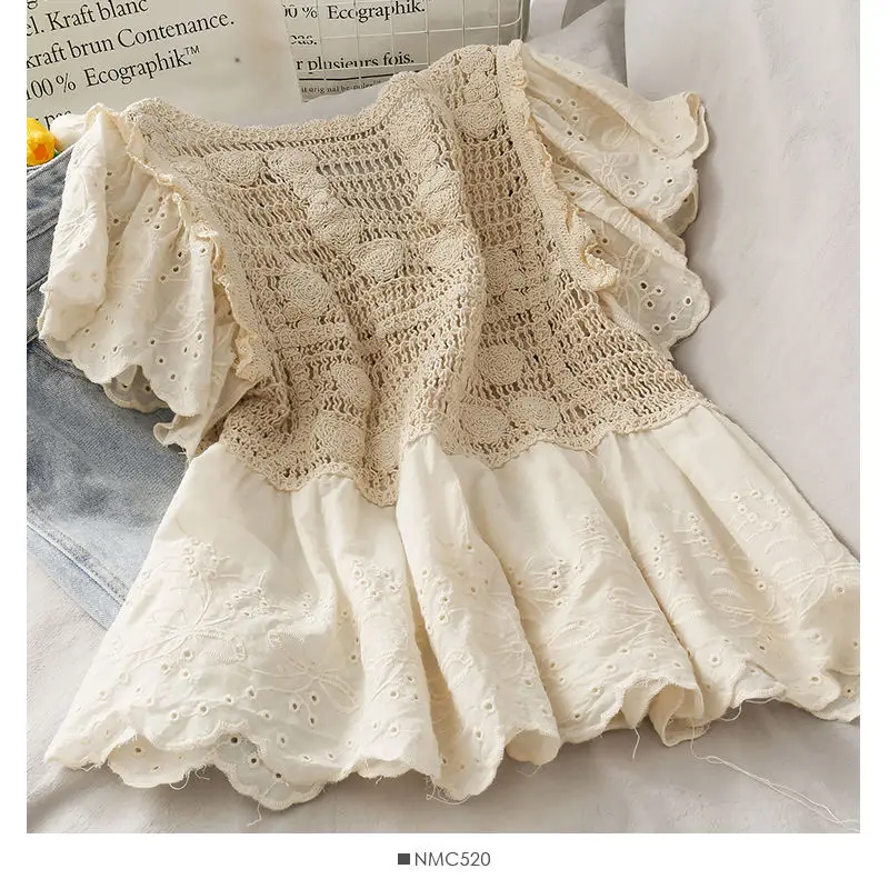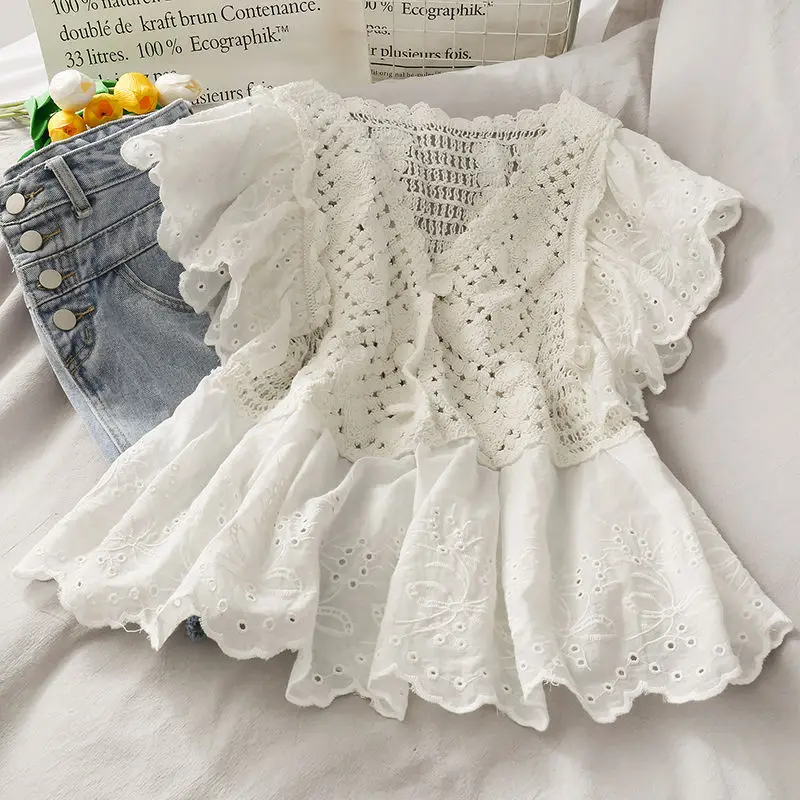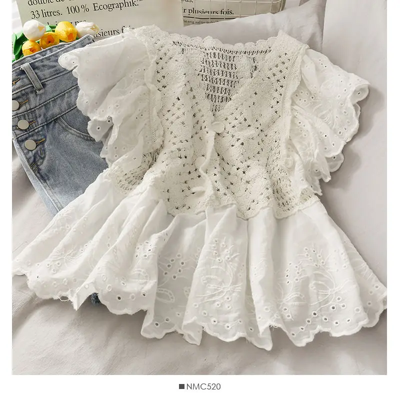 Blouses Women Sweet Floral Hollow Out Design Chic Popular Summer All-match Girls Blusas Top Lovely Vintage Basic Womens Shirts