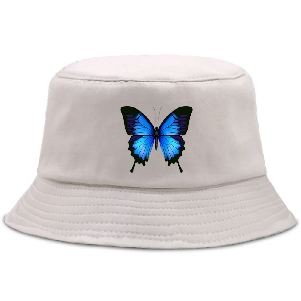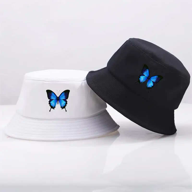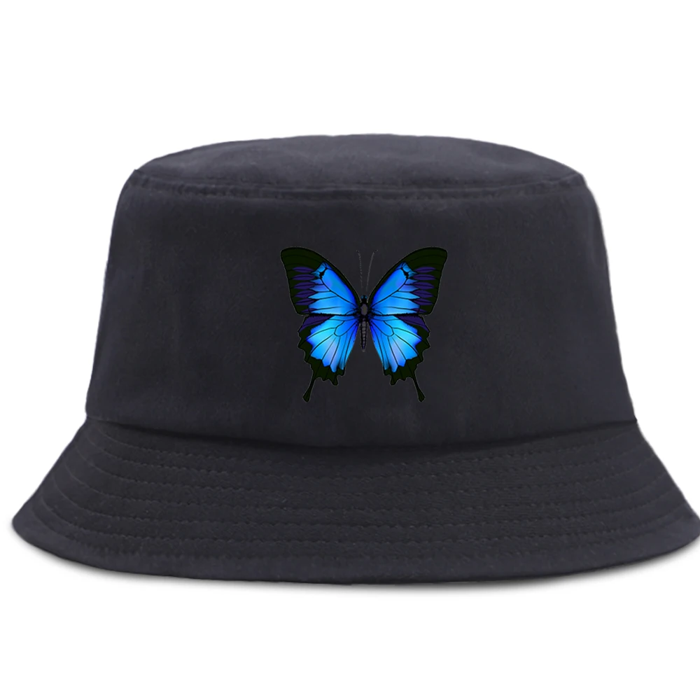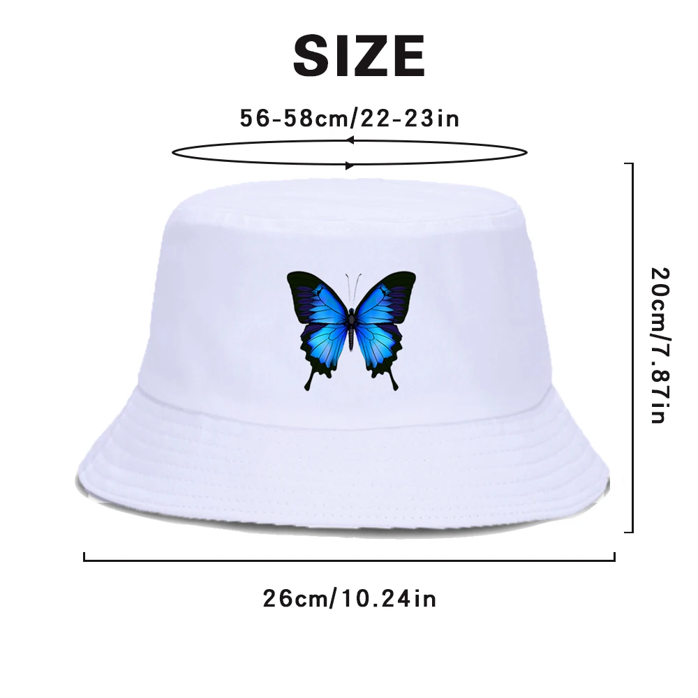 Blue Butterfly Harajuku Fisherman’s Hats Sunscreen Casual Beach Sun Cap Outdoor Unisex Bucket Hat Foldable Cotton Panama Caps