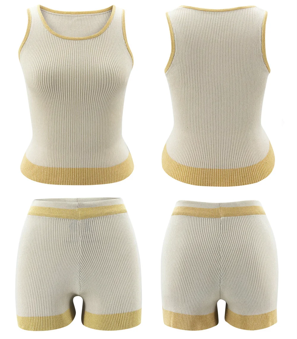 BOOFEENAA Comfy Knitted Lounge Wear Two Piece Set Women Summer Outfits Tank Top and Shorts Matching Sets 2021 C34-CF24